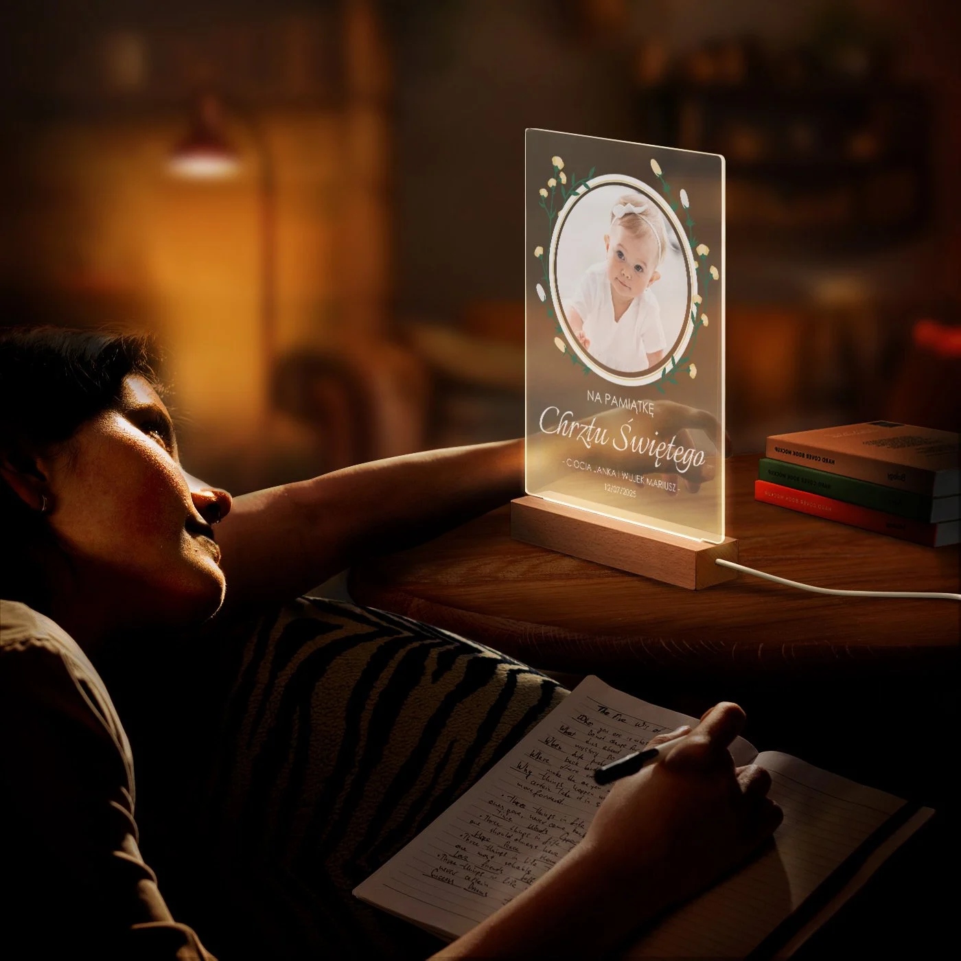 Светодиодная ночная лампа 3D XL рама фото на стеклянном подарке для крещения крещения