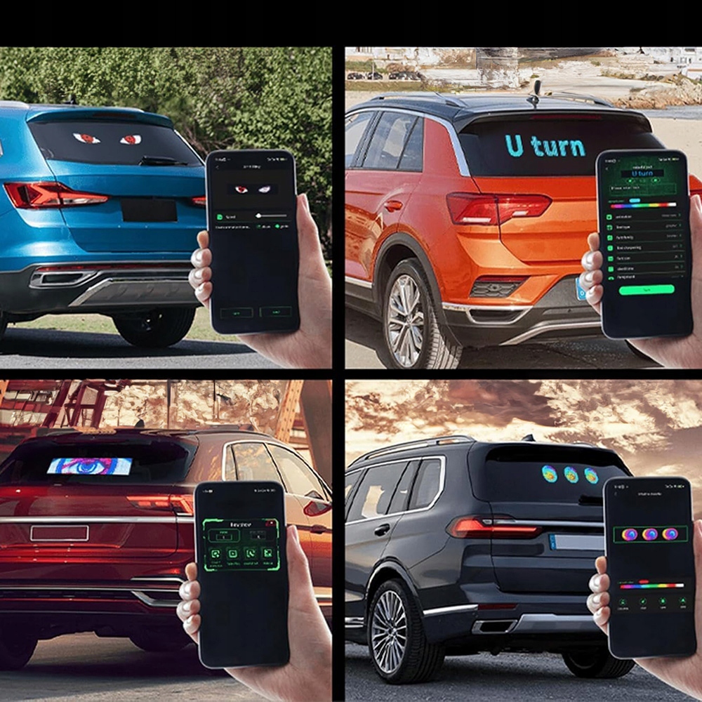 Динамический, программируемый, гибкий светодиодный дисплей DIY для автомобилей может использоваться в барах, ресторанах, магазинах, автомобилях, продавцах улиц, на вечеринках, концертах, свадебных украшениях и многом другом. Скверните свою машину, прикрепляя ультра -высокий светодиодный экран BT к стакану автомобиля.
