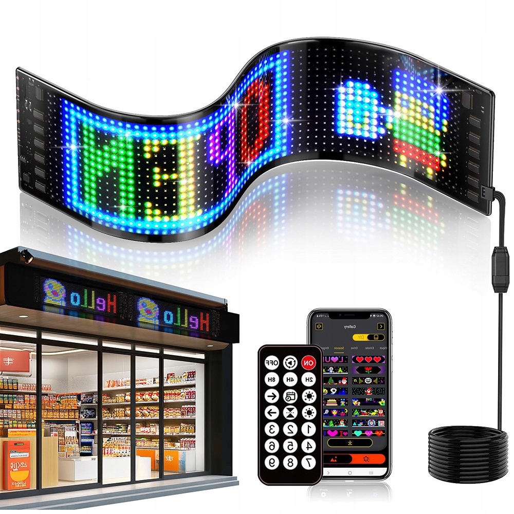 - 【Гибкий и прочный экран】Красочный мягкий светодиодный экран для автомобильных окон можно сгибать, складывать и придавать ему форму, подходящую для различных поверхностей. Этот программируемый гибкий светодиодный дисплей толщиной всего 2 см очень легкий и простой в установке.