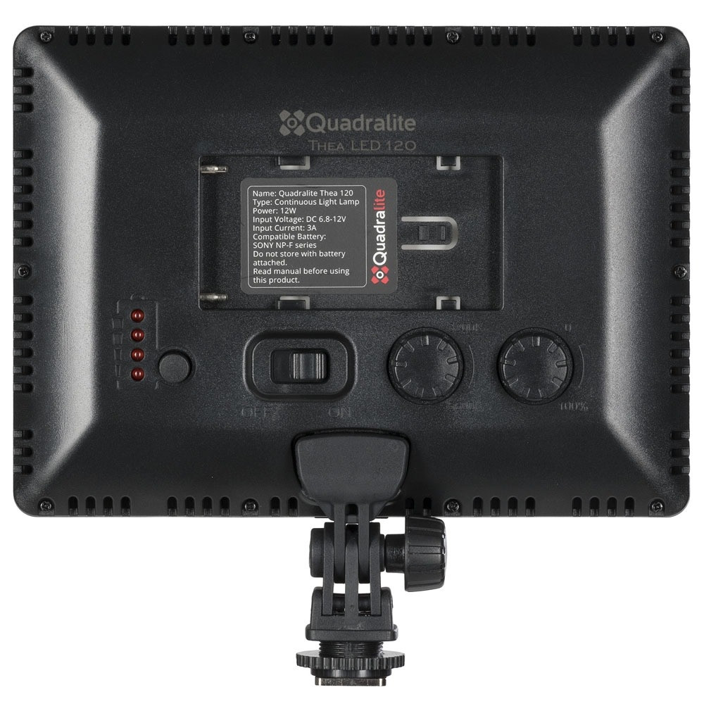 Светодиодная панель Quadralite Thea 120 — это источник света, предназначенный для мобильного использования. Его ключевой особенностью является компактный размер, поэтому его всегда можно взять с собой и легко установить в нужном месте, например, на фотоаппарат, видеокамеру или штатив. Эта панель обеспечит мягкий студийный свет в записи без необходимости использования дополнительных модификаторов.