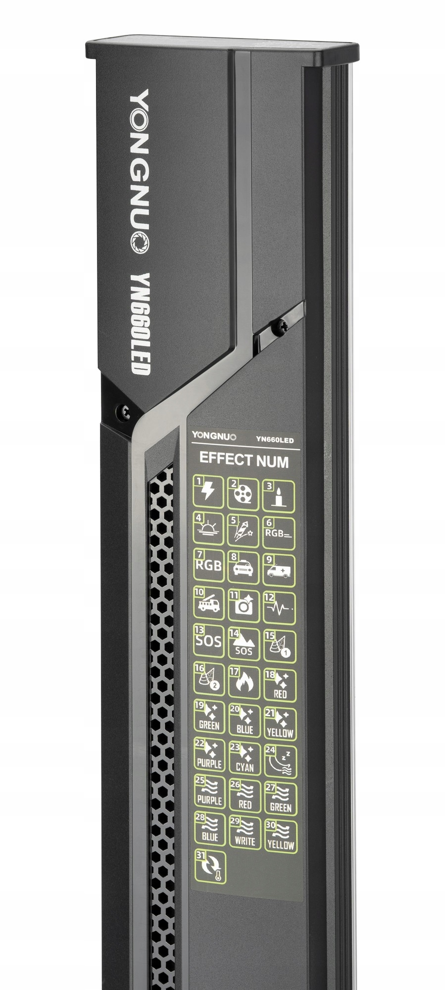 Бренд Yongnuo постоянно расширяет семейство своих ламп и продольных светодиодных панелей для универсального использования в кино и фотографии. Модель YN660LED пересматривает эргономику работы со световым мечом. Прибор отличается характерной ручкой с читаемым ЖК-экраном, функциональными кнопками и специальной ручкой, обеспечивающей плавную регулировку параметров освещения. Современный корпус выполнен из алюминия и прочного пластика. Производитель также позаботился о должной вентиляции и оптимальной балансировке при установке аккумуляторов. Все это делает работу со светодиодной лампой Yongnuo YN660LED комфортной, как при установке ее на штатив, так и при освещении кадров и снимков с рук.