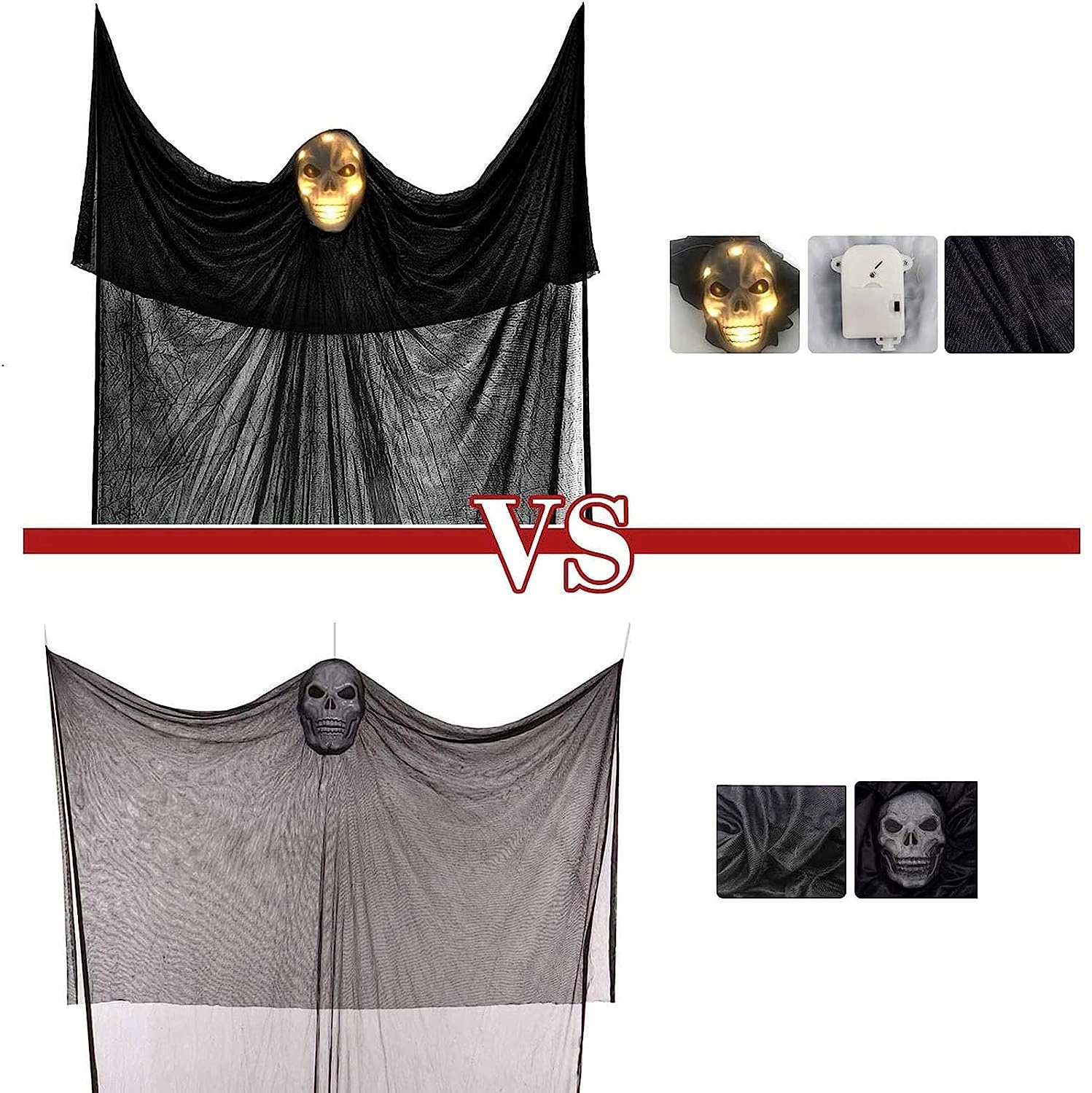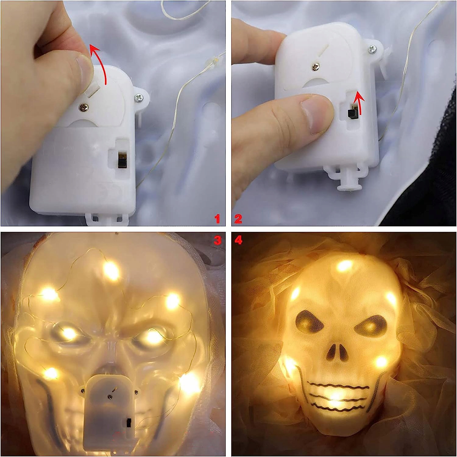✅ В верхней части маски-черепа имеется леска, которую легко прикрепить к деревьям, стенам и карнизу. Гибкая черная сетчатая ткань легко приспосабливается к любой позе и позволяет легко дуть ветру.
