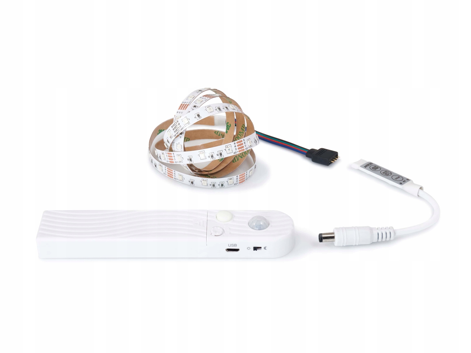 КОМПЛЕКТ СВЕТОДИОДНОЙ ЛЕНТЫ RGB 5В 1М + КОНТРОЛЛЕР С ДАТЧИКОМ ДВИЖЕНИЯ И ЗАМЕРА ДЛЯ БАТАРЕЙ AAA
