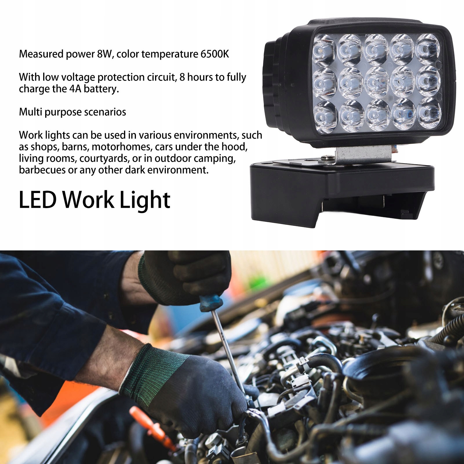 4. ПРИМЕНИМЫЕ СЦЕНАРИИ: Лампу можно использовать в различных помещениях, таких как магазины, сараи, дома на колесах, автомобили под капотом, гостиные, дворы, а также кемпинги на открытом воздухе, барбекю или другие темные места.