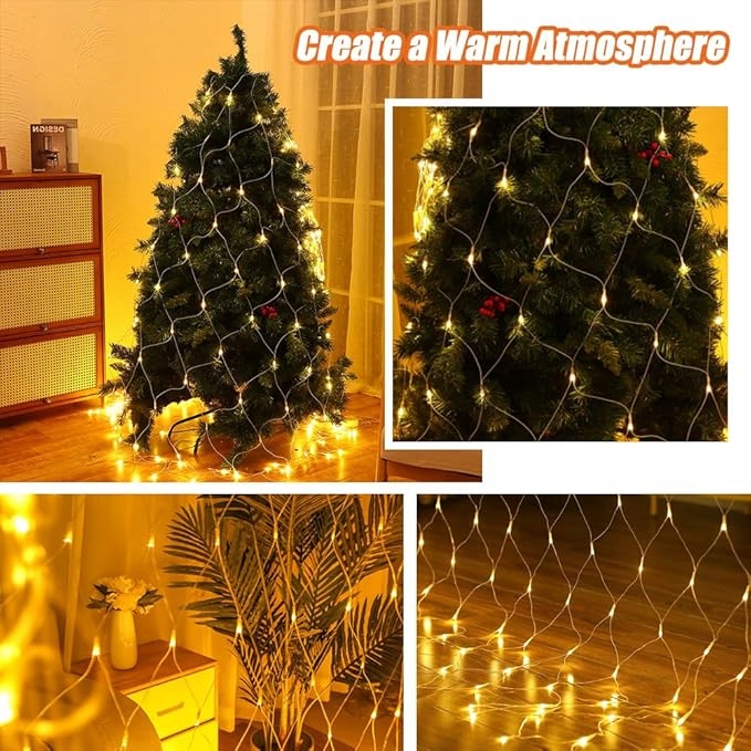 Світлодіодна сітка ТЕПЛИЙ БІЛИЙ ялинковий вогник ШТОРА 3х3м 230В