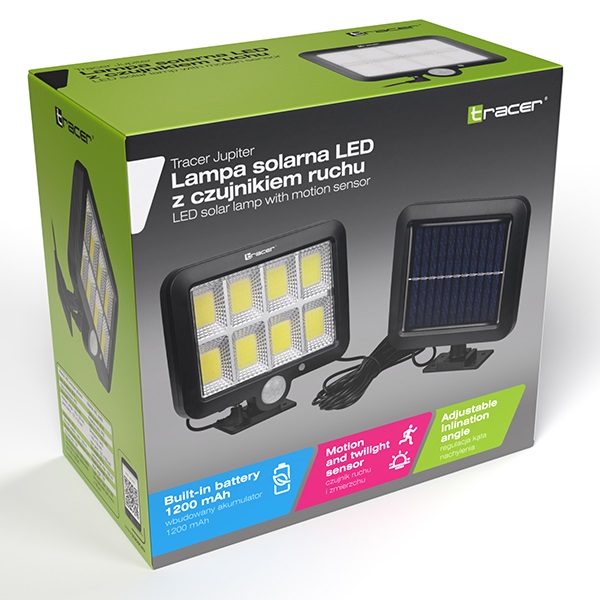 Светодиодный солнечный прожектор с датчиком движения и сумерек TRACER JUPITER