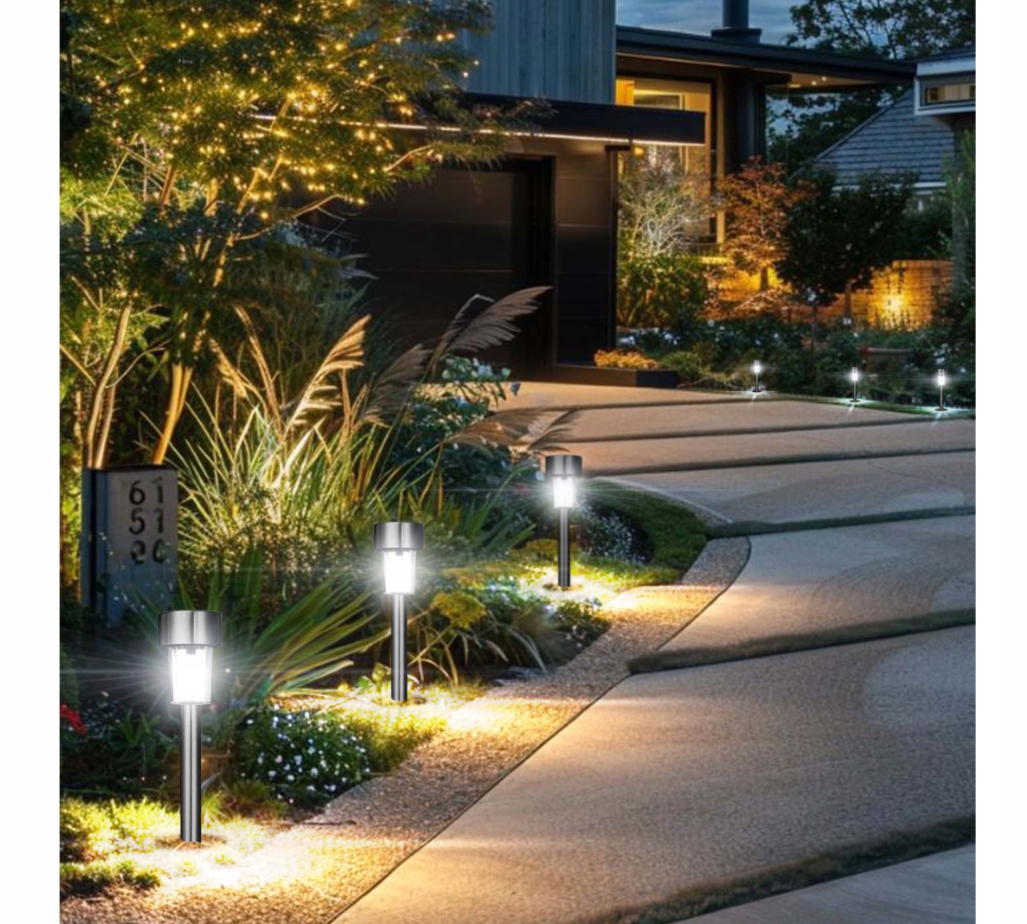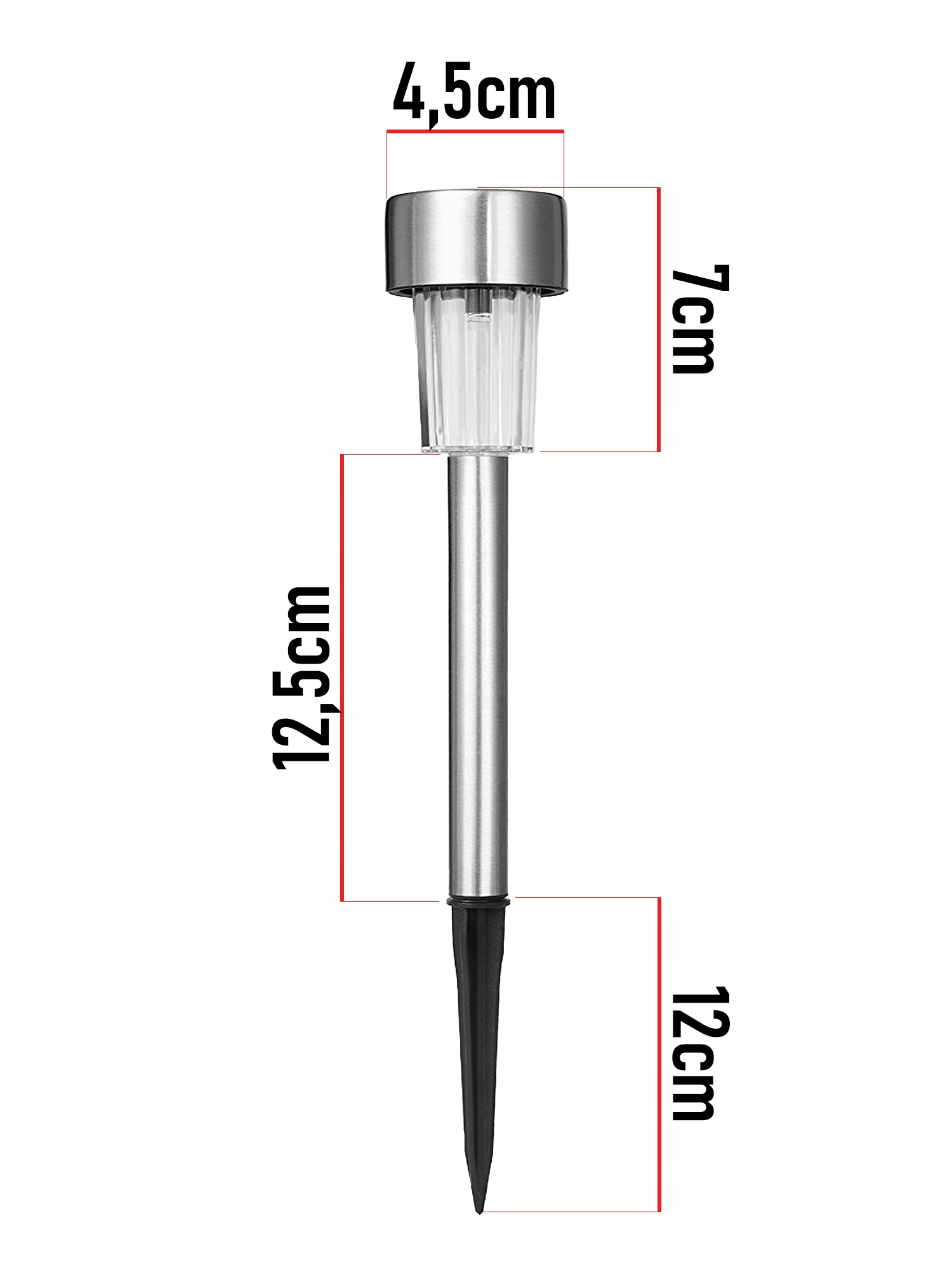 Lampa Solarna LED SŁUPEK OGRODOWY WBIJANY Srebrny