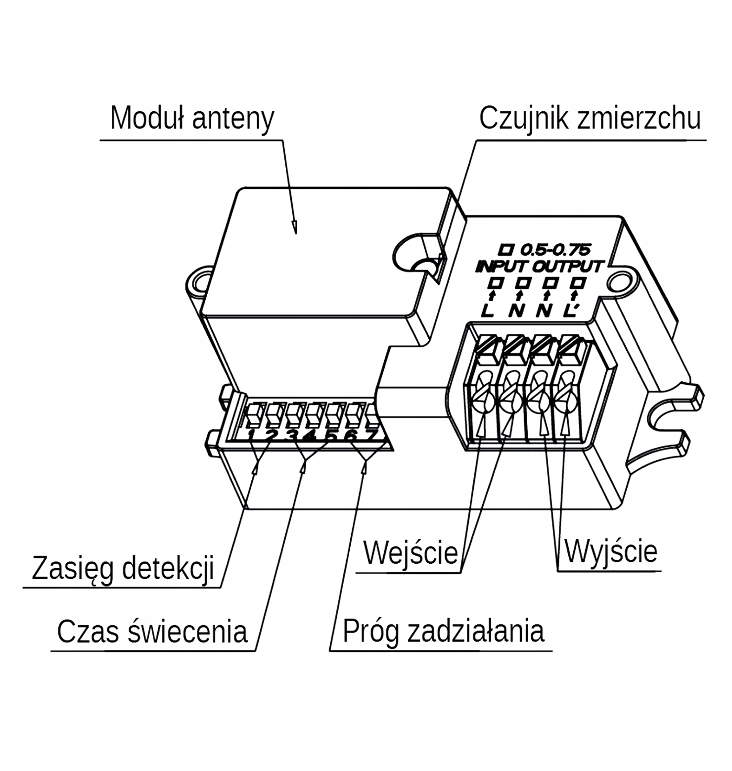 - Порог работы: 2 lux /10lux/25lux/50lux [корректировка]