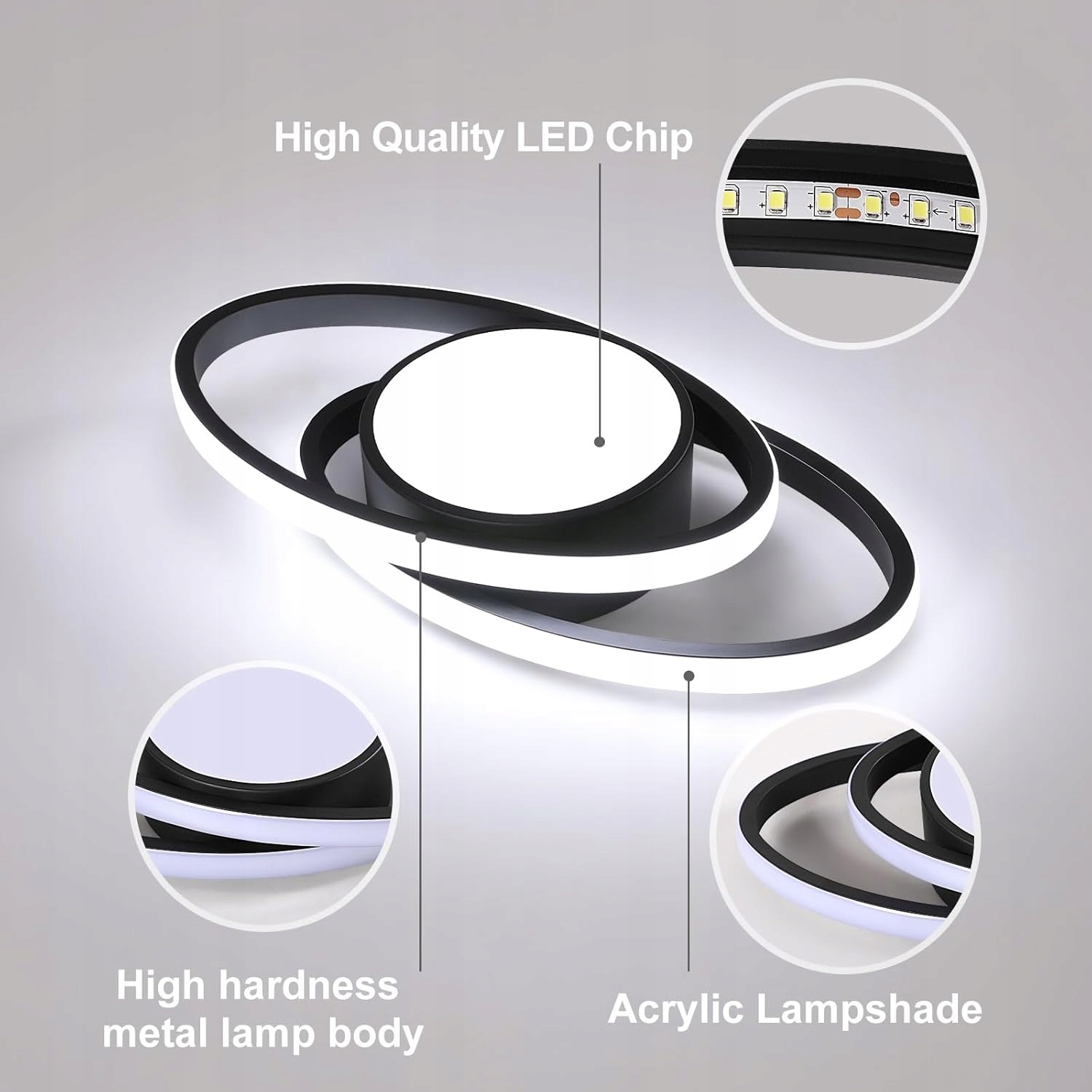Материалы высокого качества: h2> - Сделано из алюминиевой основы и рамы, эта светодиодная потолочная лампа является легкой и в то же время твердое и долговечное. акриловые оттенки хорошо сопровождают тепло, равномерно распределяя свет по всей комнате.