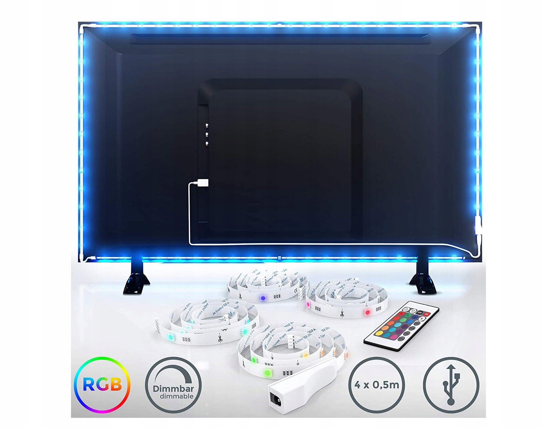 СВІТЛОДІОДНА СТРІЧКА 10Вт - 2м - USB З ПУЛЬТОМ - ПІДСВІТЛЕННЯ ТВ