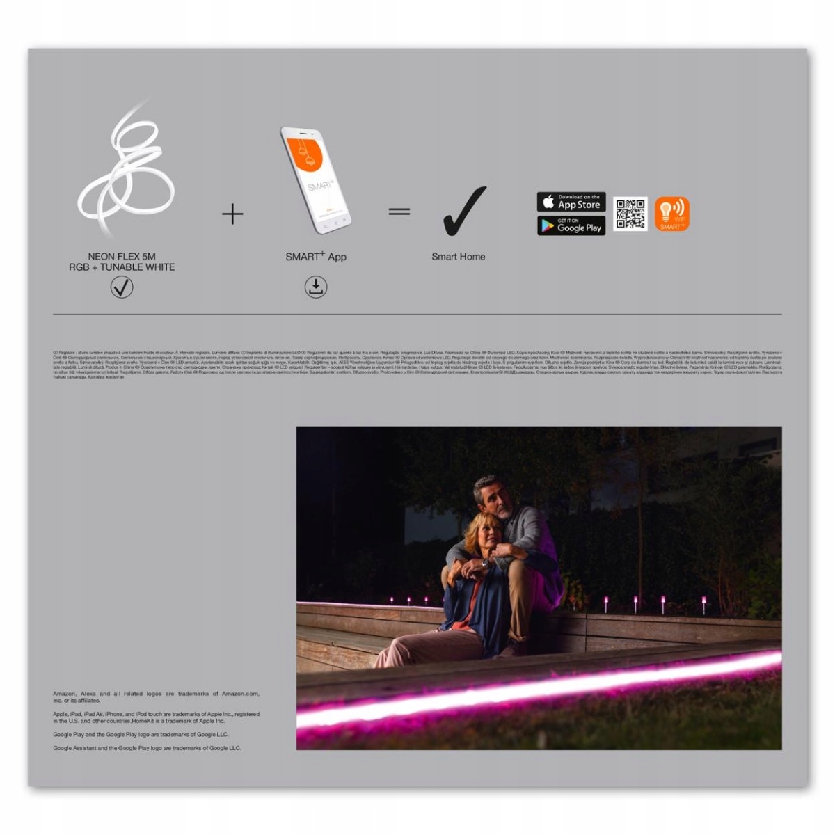 Светодиодная лента изготовлена с применением современных решений, с применением инновационной технологии LED диодов, благодаря чему мы получаем высокие эксплуатационные параметры и точную цветопередачу. Основным преимуществом светодиодной технологии является снижение энергопотребления до 80% по сравнению с традиционными источниками света. Светодиодная лента NEON FLEX поддерживает системы Amazon Alexa и Google Assistant.