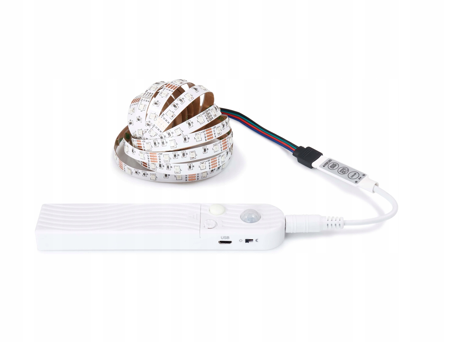 КОМПЛЕКТ СВЕТОДИОДНОЙ ЛЕНТЫ RGB 5В 2М + КОНТРОЛЛЕР С ДАТЧИКОМ ДВИЖЕНИЯ И ЗАМЕРА ДЛЯ БАТАРЕЙ AAA