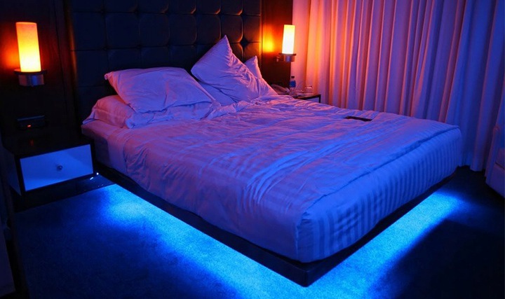 Он также отлично подойдет и в других местах, например в спальне. Приклейте скотч под кровать, подключите к электросети и придайте своей спальне неповторимую атмосферу.
