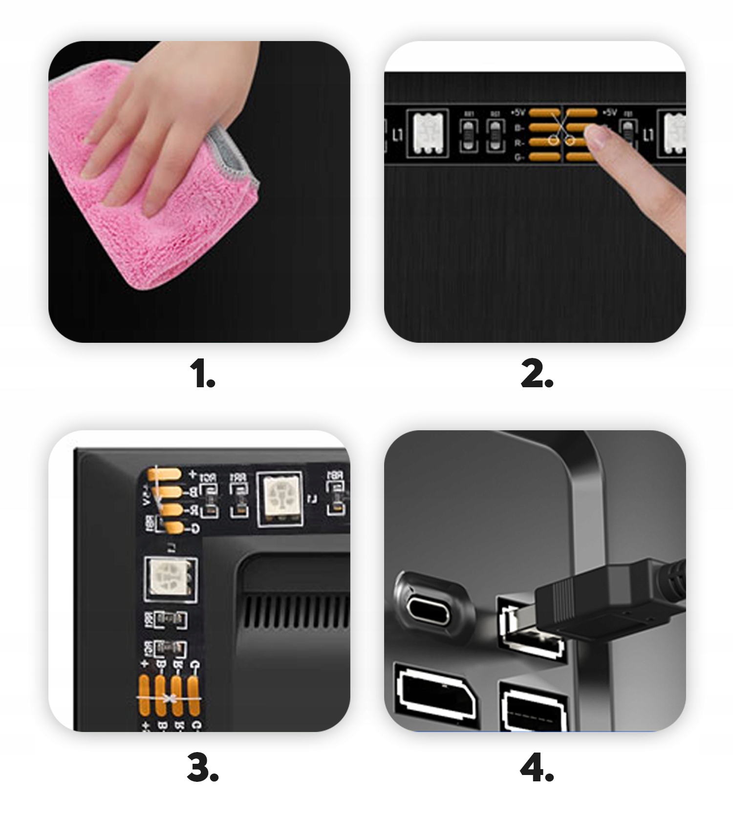 4️⃣ Подключите светодиодную ленту к USB-порту.
