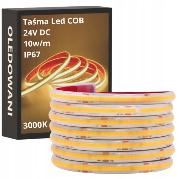 Светодиодная лента COB 24В для счетчиков 324лед/м 10Вт/м IP67 ТЕПЛЫЙ БЕЛЫЙ