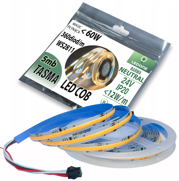 ⭐ Адресная светодиодная лента COB PREMIUM - рулон 5 метров - НЕЙТРАЛЬНО-БЕЛЫЙ
