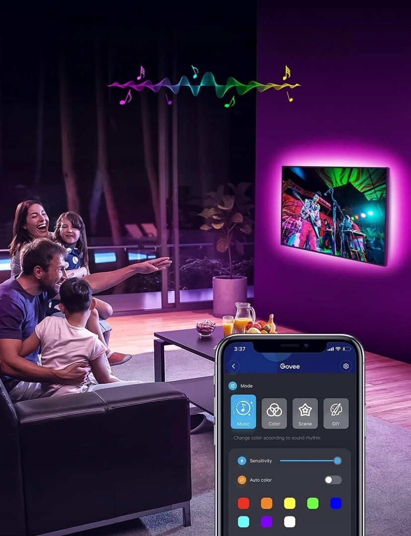 Безопасно для использования: светодиодный Govee H6182 светодиод питается по сети. Благодаря своему водонепроницаемости IP65, защите от низкого напряжения и 5 В коротких замыканий, они безопасны для использования даже детьми, а пожилые люди оснащены защитой от короткого цикла и функции памяти