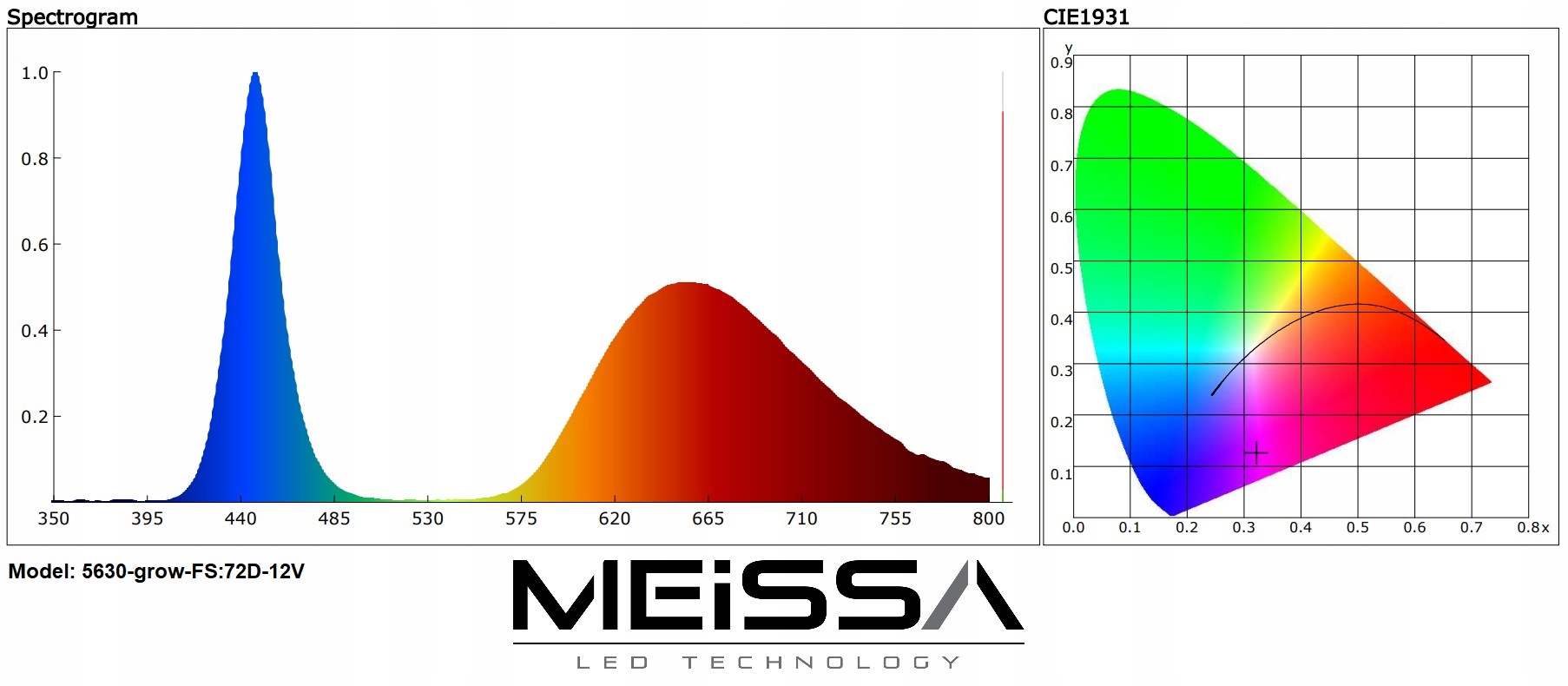 Фактический спектр светодиодной ленты 5630-grow-FS:72D-12V показан ниже