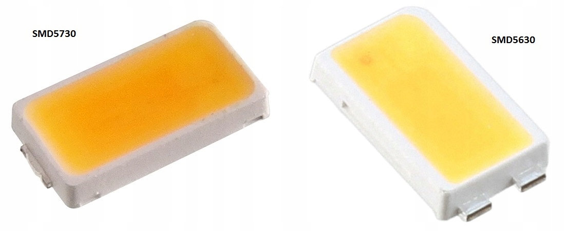 Печатная плата светодиодной ленты имеет маркировку 5630, но на самом деле впаяны диоды SMD 5730. LED 5630 от 5730 отличаются в основном длиной паяных ножек, которые у ldi 5730 на 0,05 мм длиннее с каждой стороны, и там также по одной широкой ножке с каждой стороны. Кроме того, визуально они одинаковы. Кроме того, площадки для пайки на печатной плате могут быть идентичными и взаимозаменяемыми.