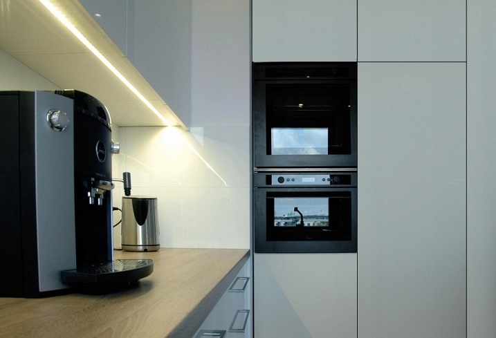 Готовая светодиодная лента – идеальный способ осветить, например, столешницу на кухне. Выглядит все очень эстетично, а работа с установленным диммером приятна и интуитивно понятна.