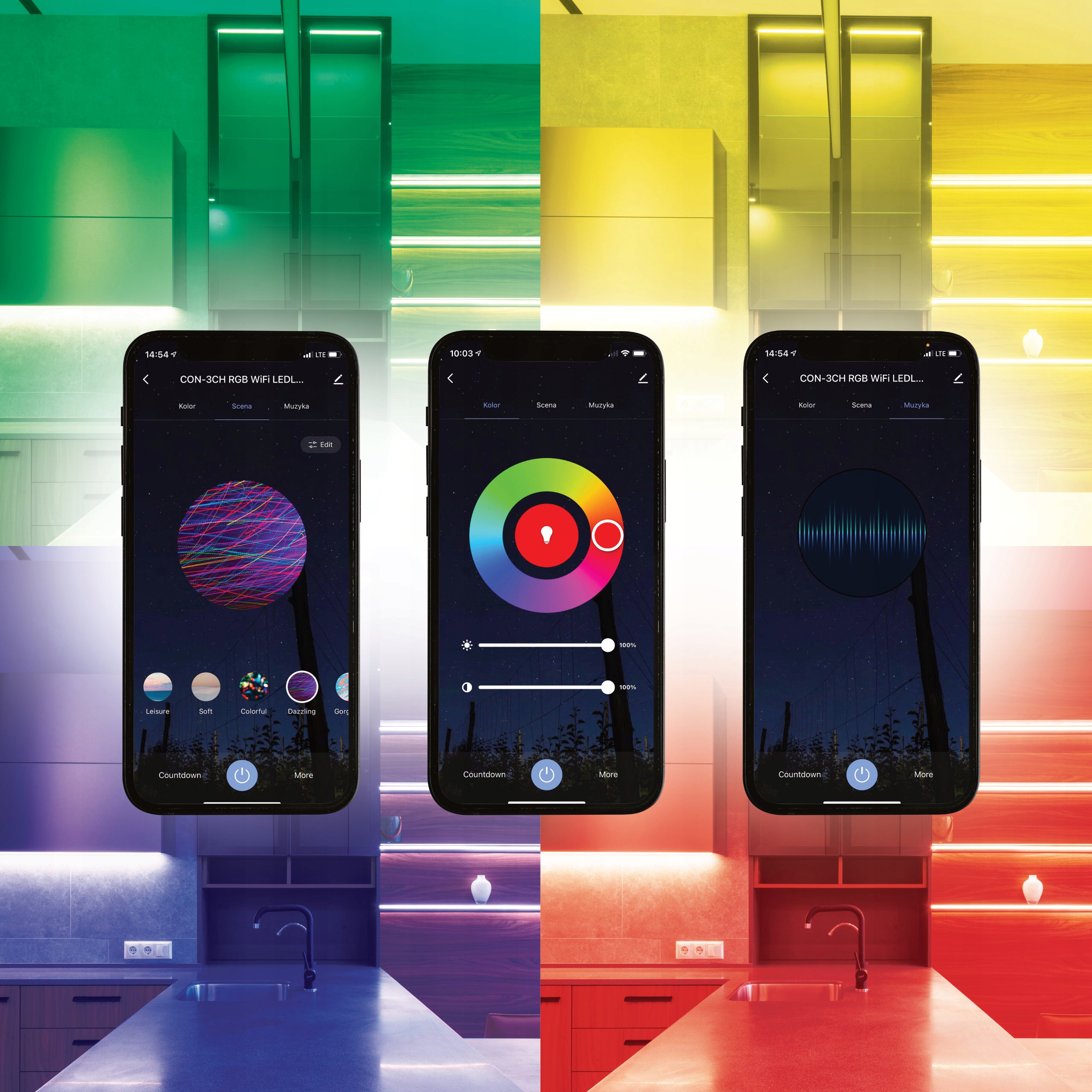 Благодаря интуитивно понятному специальному приложению мы можем легко выбрать любой цвет для домашнего освещения.