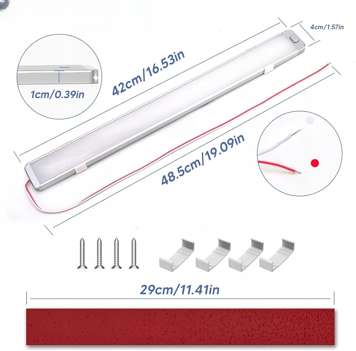 Автомобильный светодиодный фонарь на 12 В изготовлен из ультратонкой, износостойкой пластины из алюминиевого сплава толщиной 1 см и покрыт воздухопроницаемым ПВХ; Размер 42 х 4,13 х 1,3 см, хорошая светопроницаемость и мягкий свет, не слишком яркий.