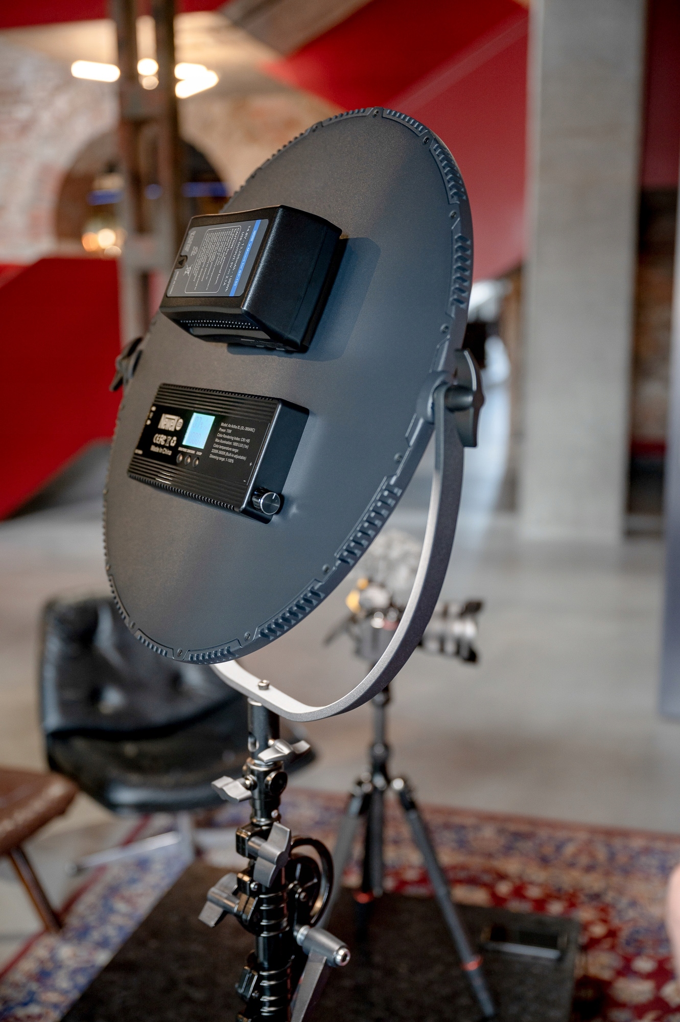 Светодиодная лампа Newell Air Artha XL — отличное устройство для фотографов и кинематографистов, которым нужен мощный источник света с большой поверхностью и круглой формой. Регулировка цветовой температуры и мощности облегчит управление соответствующей освещенностью сцены, а встроенный рассеиватель позволит получить желаемый создателями мягкий свет. Благодаря поддержке популярных в киноиндустрии аккумуляторов V-Mount лампа может работать без проводов. Удобное управление также поддерживается пультом со встроенным экраном.