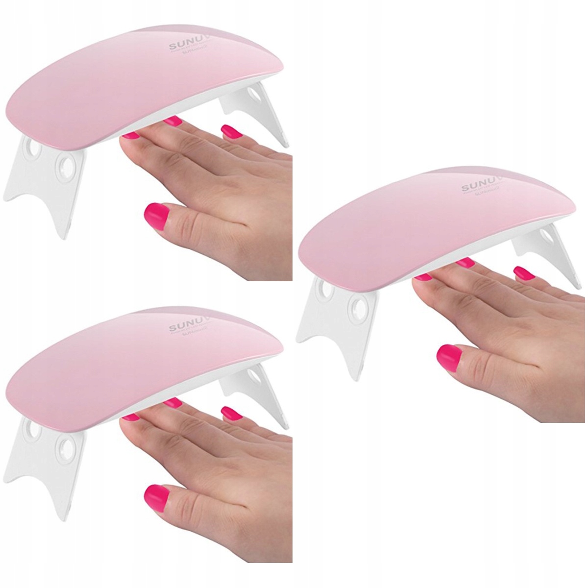 3 * SunMini, 6 Вт, светодиодная УФ-лампа для сушки ногтей, портативный светильник для гелевых полировальных машин, маникюра/педикюра, 2 настройки времени 45 S/60 секунд (розовый)