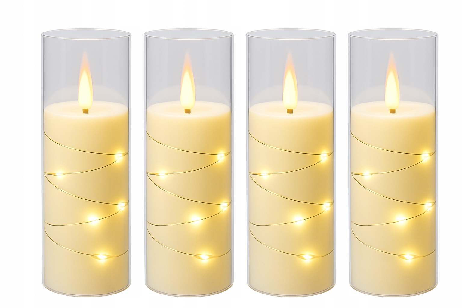 Добавьте теплую, капризную атмосферу без риска открытого огня! Наша светодиодная свеча в прозрачном стеклянном цилиндре подражает настоящему пламени и была украшена деликатной гирляндой из золотистого света, создавая уникальный визуальный эффект. h2>