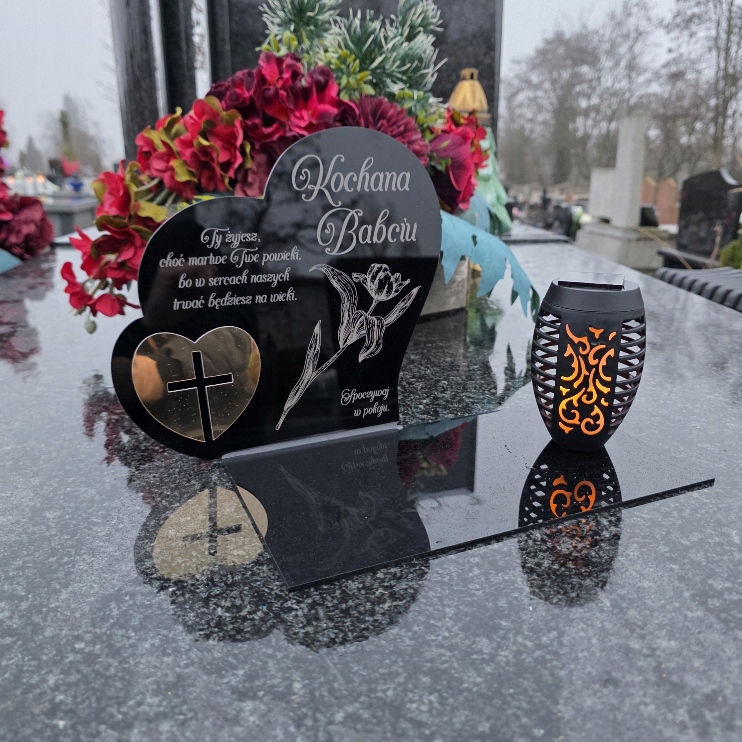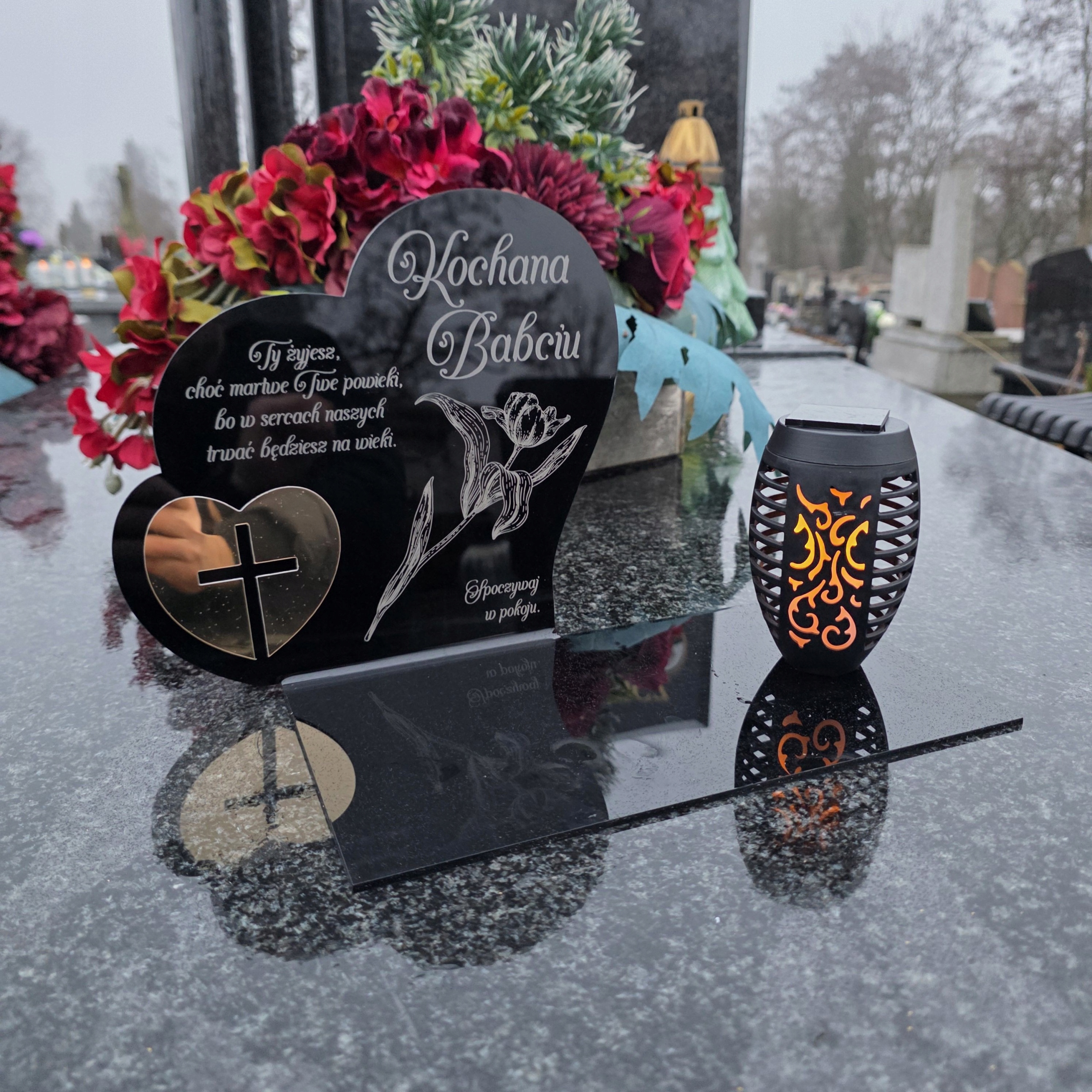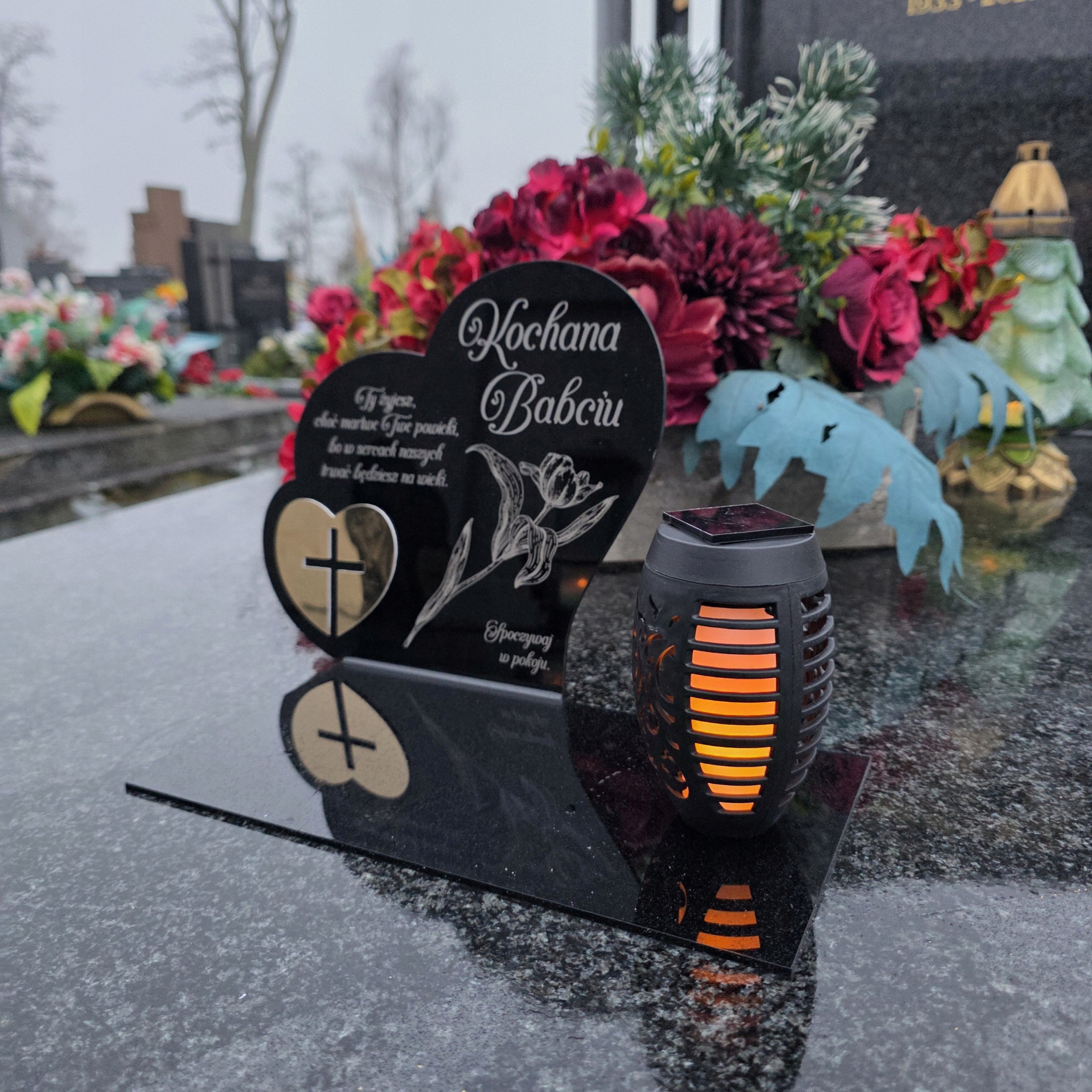 🌹 Солнечная могильная свеча "Дорогая Бабушка" с крестом и декоративным светильником 🌹
