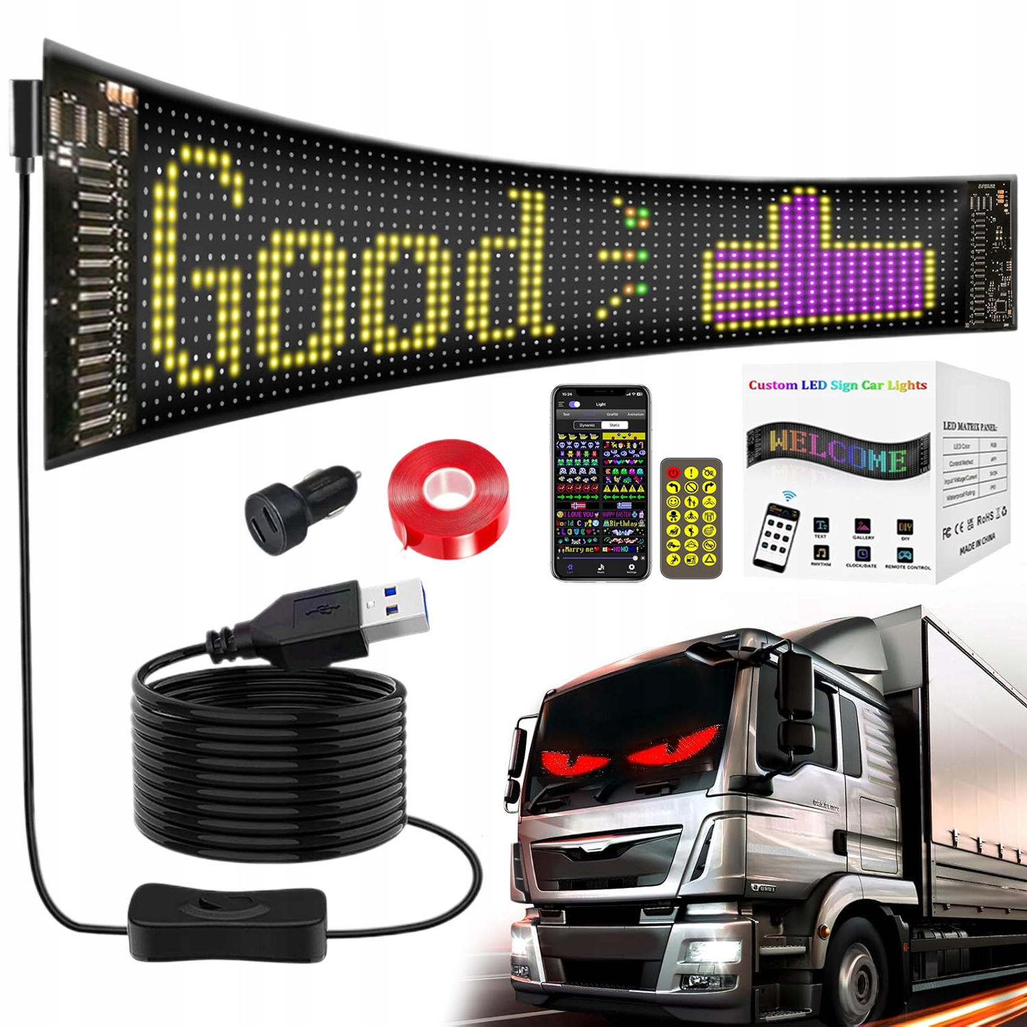 - Гибкий светодиодный дисплей для грузовиков, большой, программируемый (приложение + пилот).