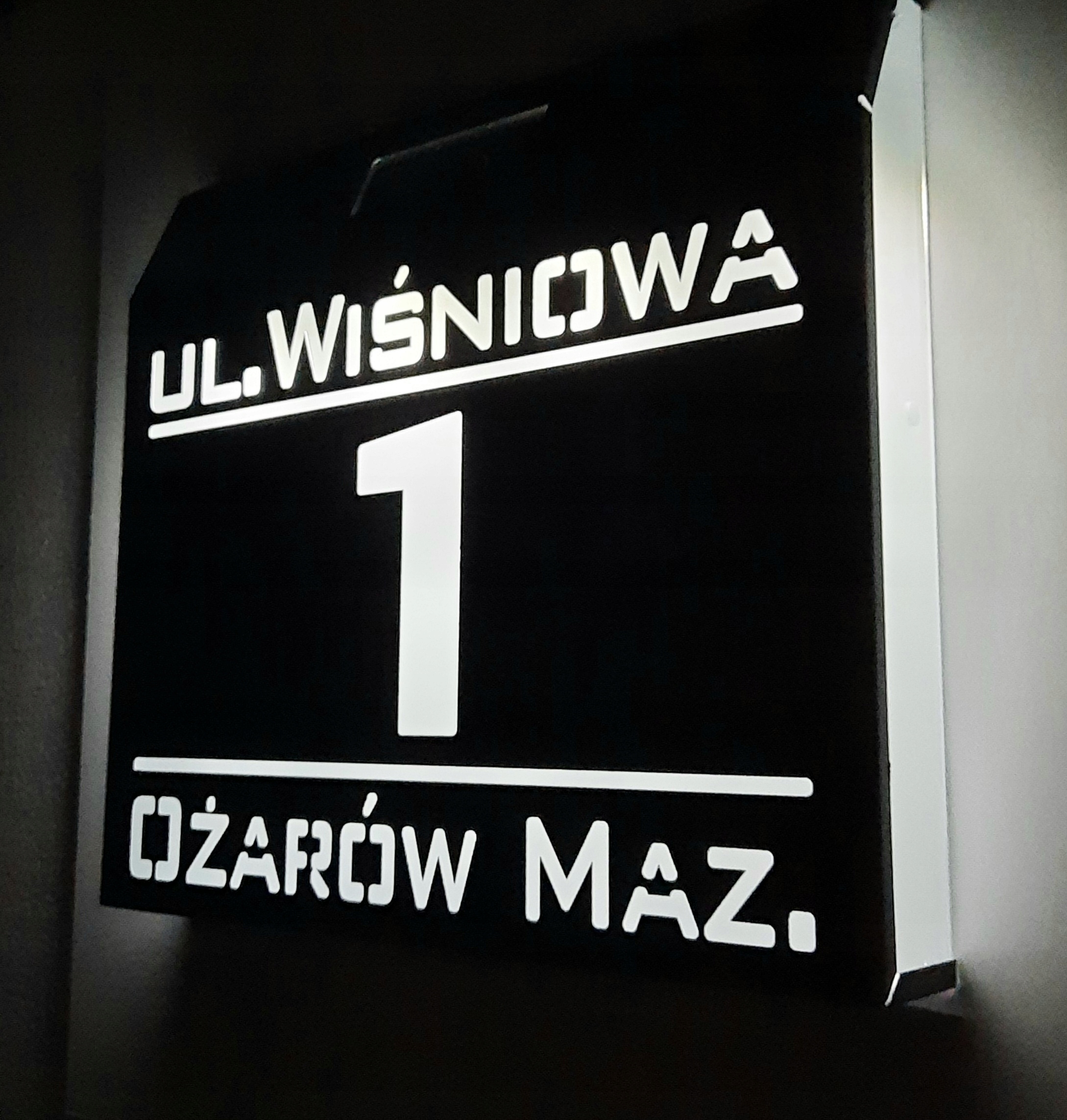 Оригинальный номер дома, конструкция которого выполнена из алюминия, покрытого лаком в цветовых сочетаниях серебристый, черный, антрацит 7016, темный антрацит RAL 7021, светло-серый 7005, серебристо-серый 9007, серебристый 9006, коричневый 8017, темный коричневый 8019.