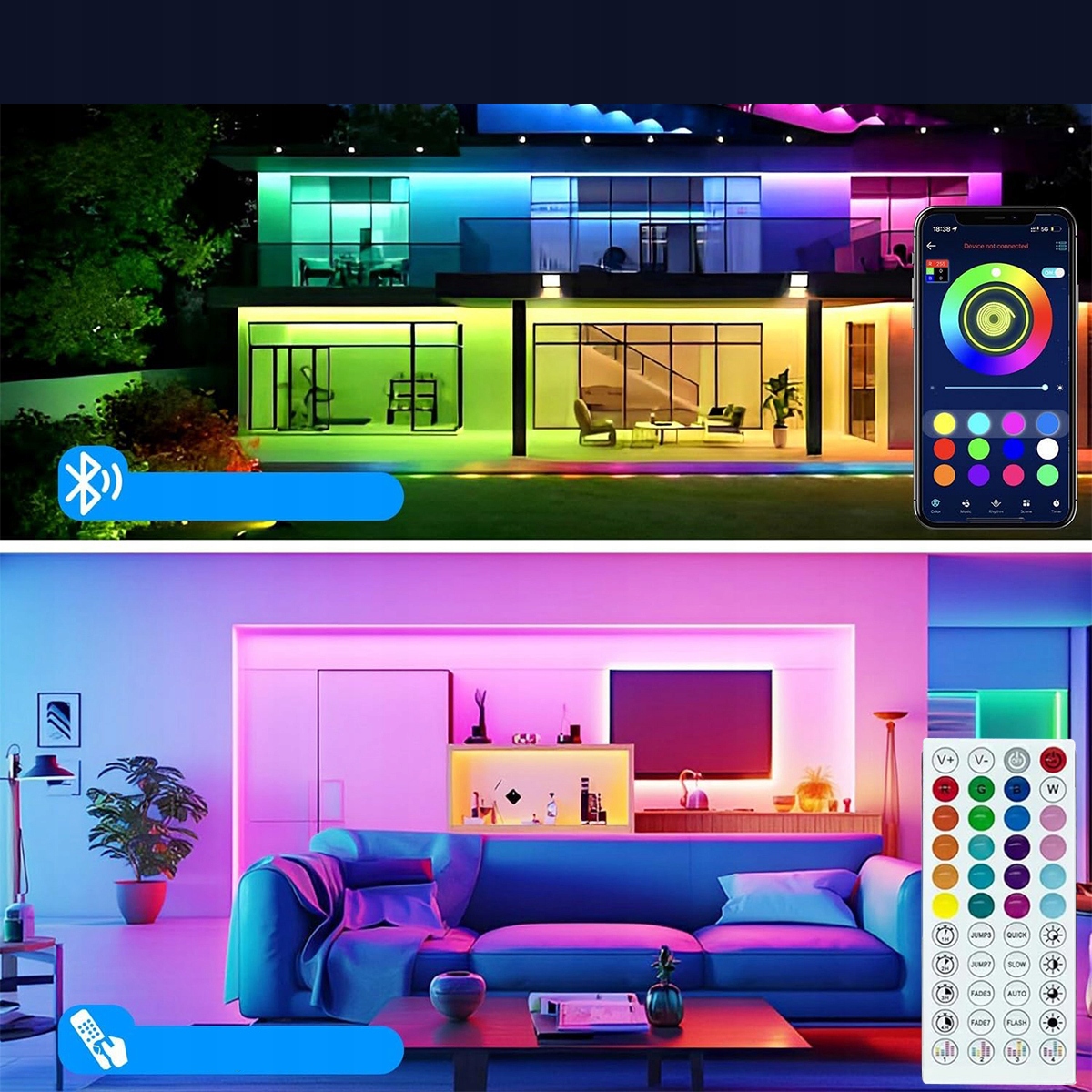 ✅Светодиодными полосами RGB длиной 20 м можно управлять не только с помощью пульта дистанционного управления, но и с помощью приложения Bluetooth.