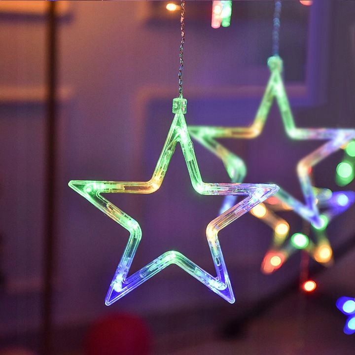Светодиодная световая занавеска рождественские лампы для окна «Звезды 3M + пульт дистанционного управления»