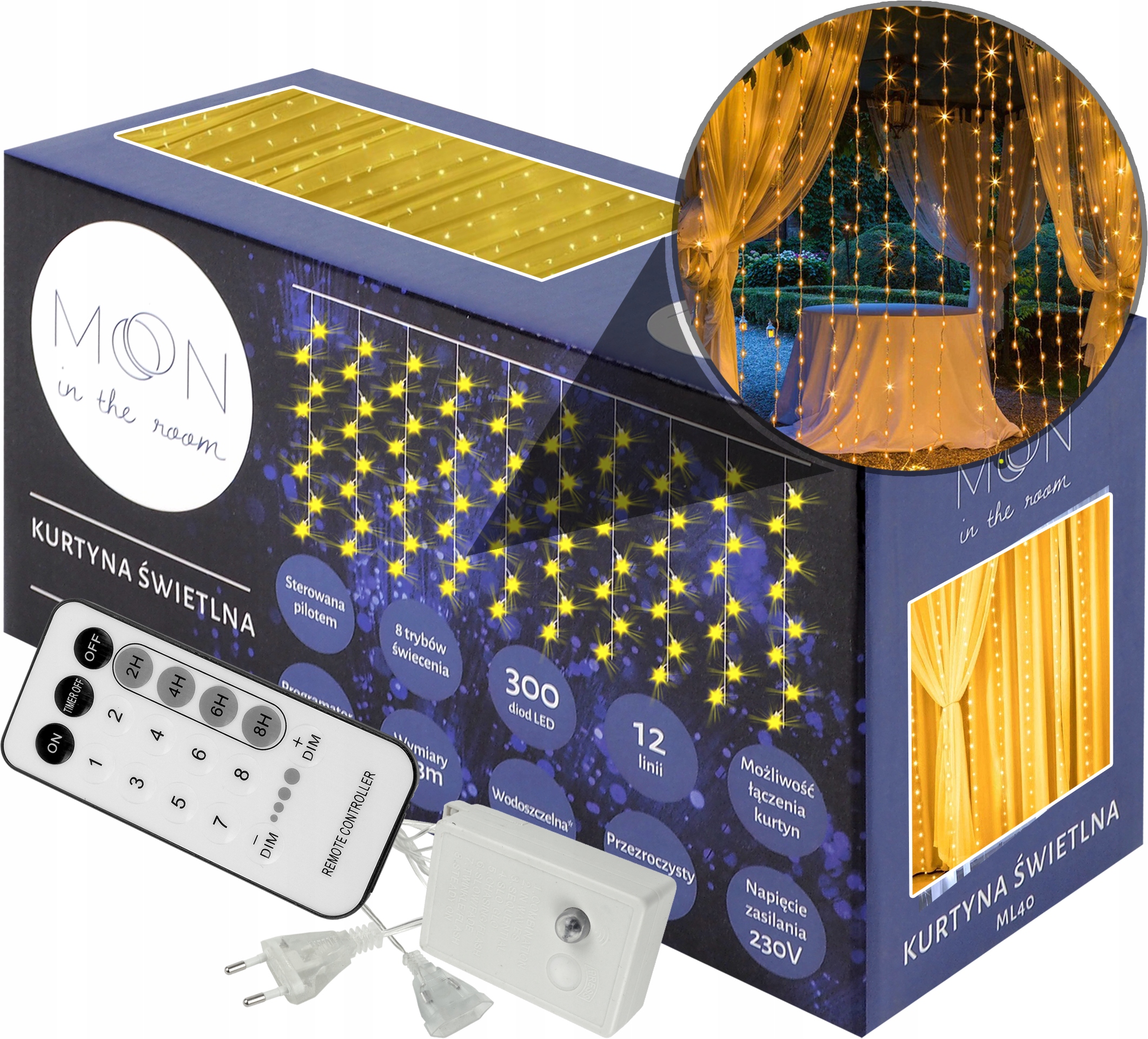 Штора оснащена функцией таймера, позволяющей настроить временное выключение ламп в диапазоне 2-8 часов. Отличная функция, которая позволяет планировать, как долго свет должен оставаться включенным. Он позволяет автоматически выключать свет в выбранное время дня и ночи без вмешательства пользователя.