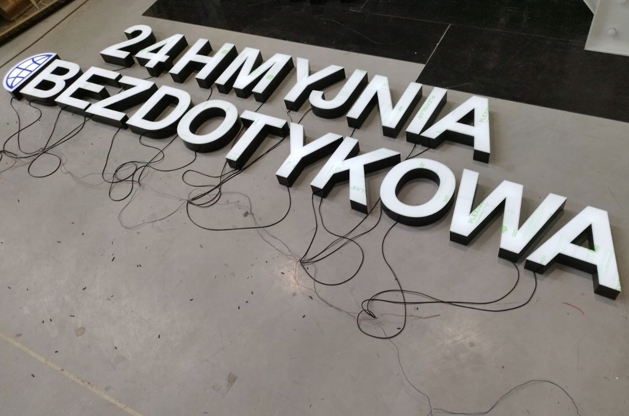 Пространственная надпись WASH из оргстекла, с подсветкой энергосберегающими светодиодными модулями, 1 шт.