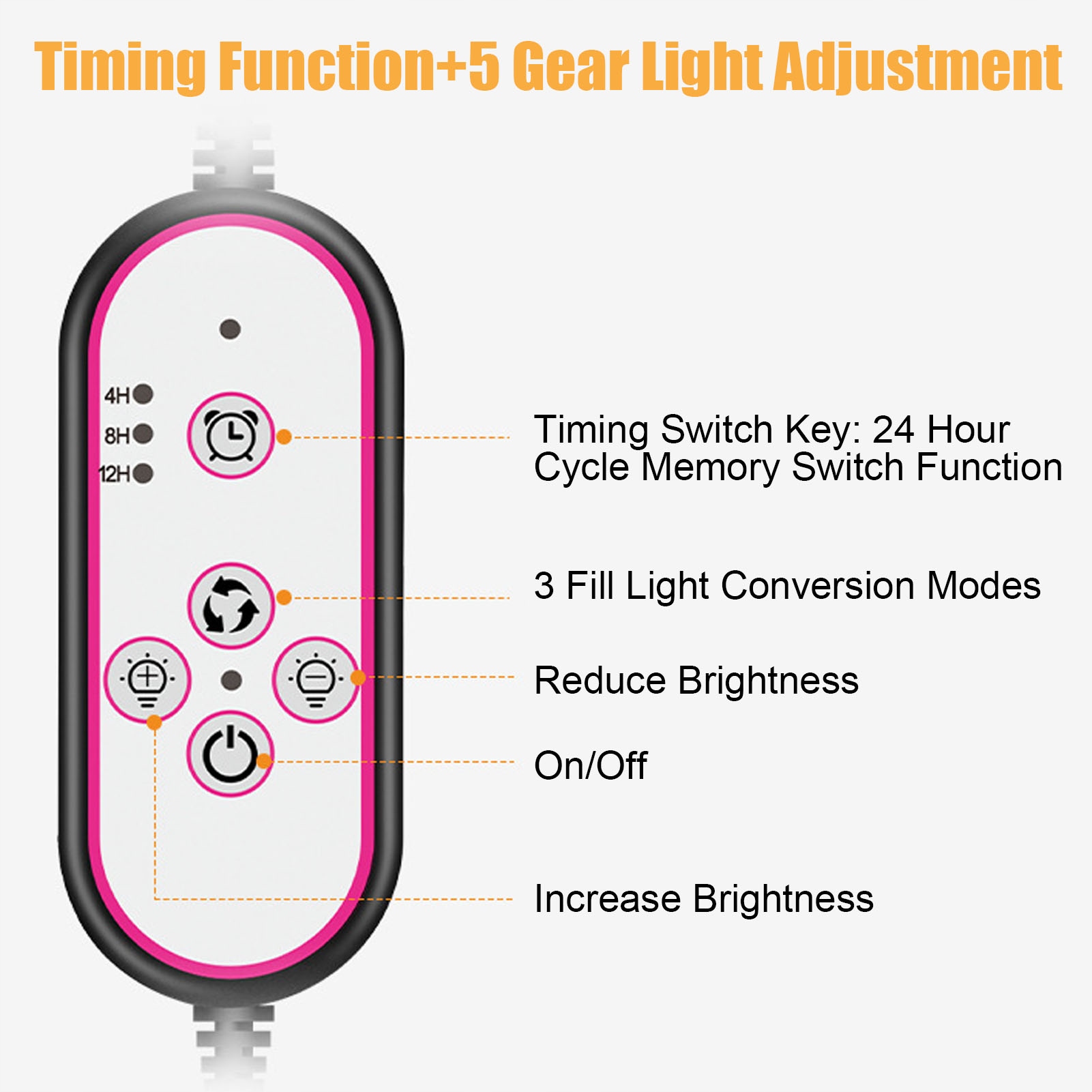 4. Функция времени: лампа позволяет в течение 4, 8, 12 часов, убедитесь, что растения могут получить правильное количество освещения, автоматически заботится о ваших растениях, когда вы дома.