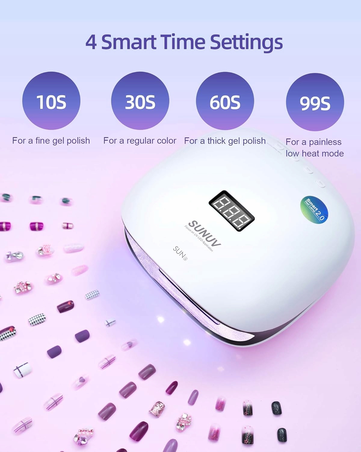 Лампа для ногтей SUN4 оснащен функцией памяти и автоматическим датчиком, а это значит, что устройство запоминает последнее выбранное время работы, а лампа автоматически включается, когда вы кладете руку внутрь. Если вы не выберете настройку вручную, время отверждения по умолчанию составит 120 секунд. Большой ЖК-дисплей показывает точное время обратного отсчета, что облегчает контроль за процессом и делает отверждение еще более интуитивным.
