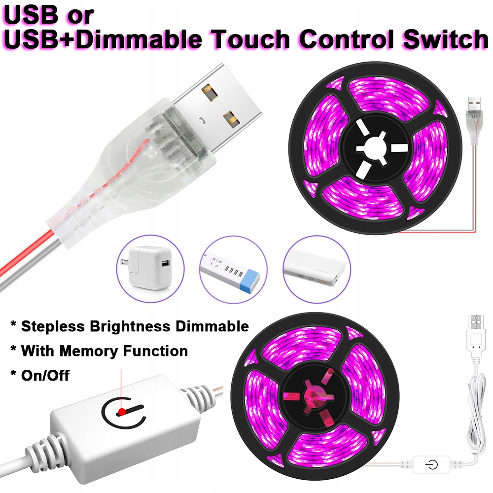【USB или USB + переключатель】 Мы используем USB-штекер и USB с регулируемой полосой переключателя, регулируемый переключатель может регулировать яркость от 10% до 100%, с Функция памяти позволяет запомнить яркость последней настройки при выключении света.