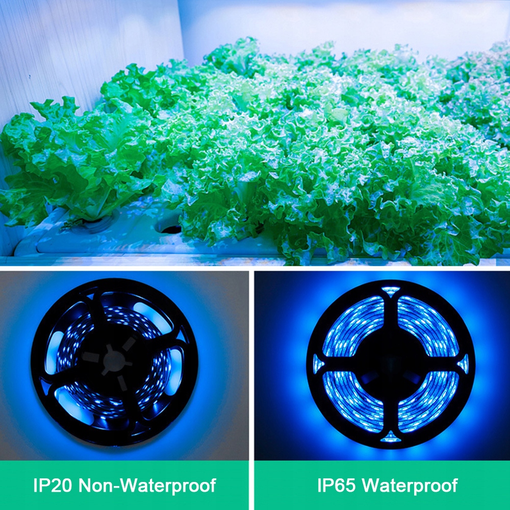 【Эффективное освещение】 1M 60LED/2M 120LED/3M 180LED, водонепроницаемая и не водонепроницаемая светодиодная лента, розово-фиолетовый (610–720 нм) и ледяной синий (445–465 нм) свет цвет, синий свет помогает растениям расти, улучшает деятельность хлоропластов, способствуя фотосинтезу растений. розово-фиолетовый свет способствует прорастанию растений, цветению.