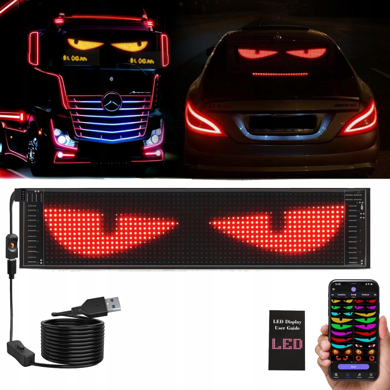 Светодиодный грузовик легкие, красочные глазные лампы для автомобиля (92*374 мм)