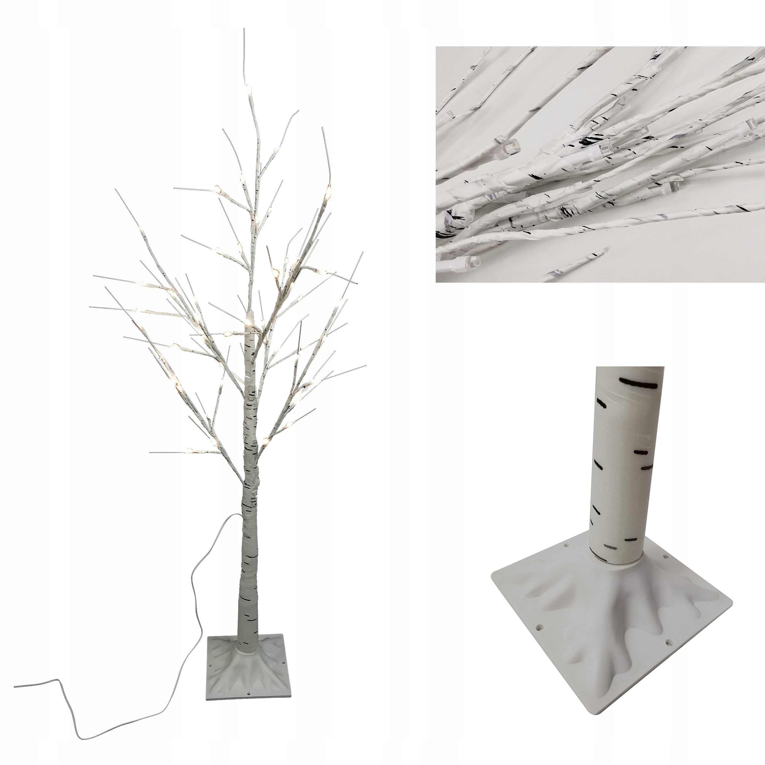 СВІТЛОДІОДНА ЯЛИНКА, 48 ЛАМП, 120 см, БІЛА БЕРЕЗОВА НОВИЧНА ПРИКРАСА
