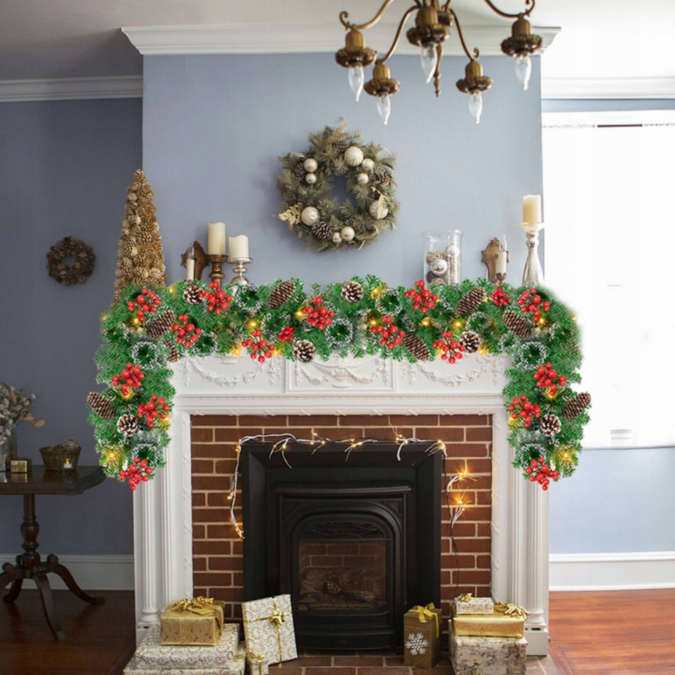 - Тип: Новогодняя гирлянда со светодиодными лампочками, хвойными ветками, рябиновыми и сосновыми шишками