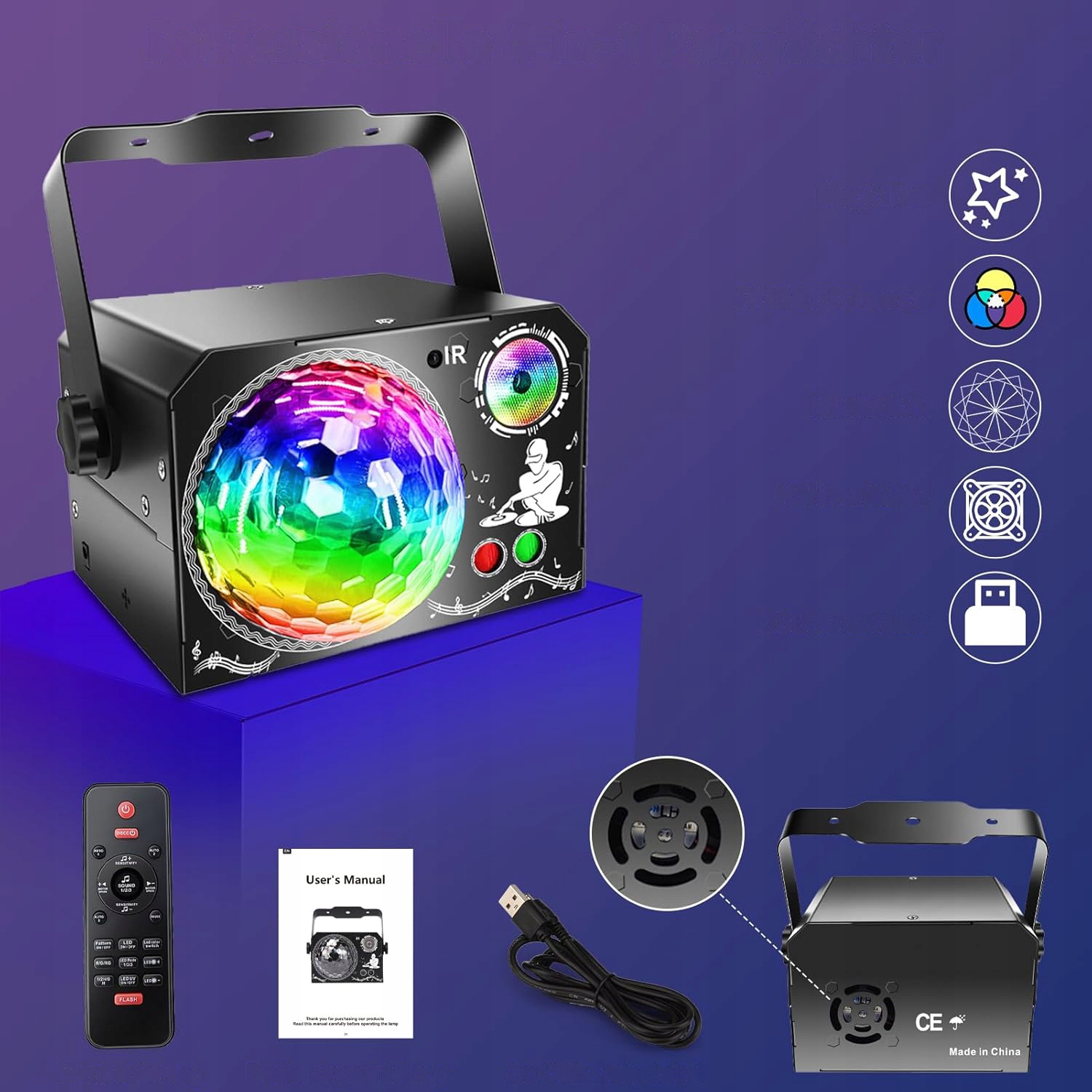 СВЕТОДИОДНОЕ СВЕТОВОЕ ОСВЕЩЕНИЕ ДЛЯ ДИСКОТЕКИ 4в1 ДЛЯ ВЕЧЕРИНКИ RGB ЛАЗЕРНЫЙ ШАР С ПУЛЬТОМ ПУЛЬТА