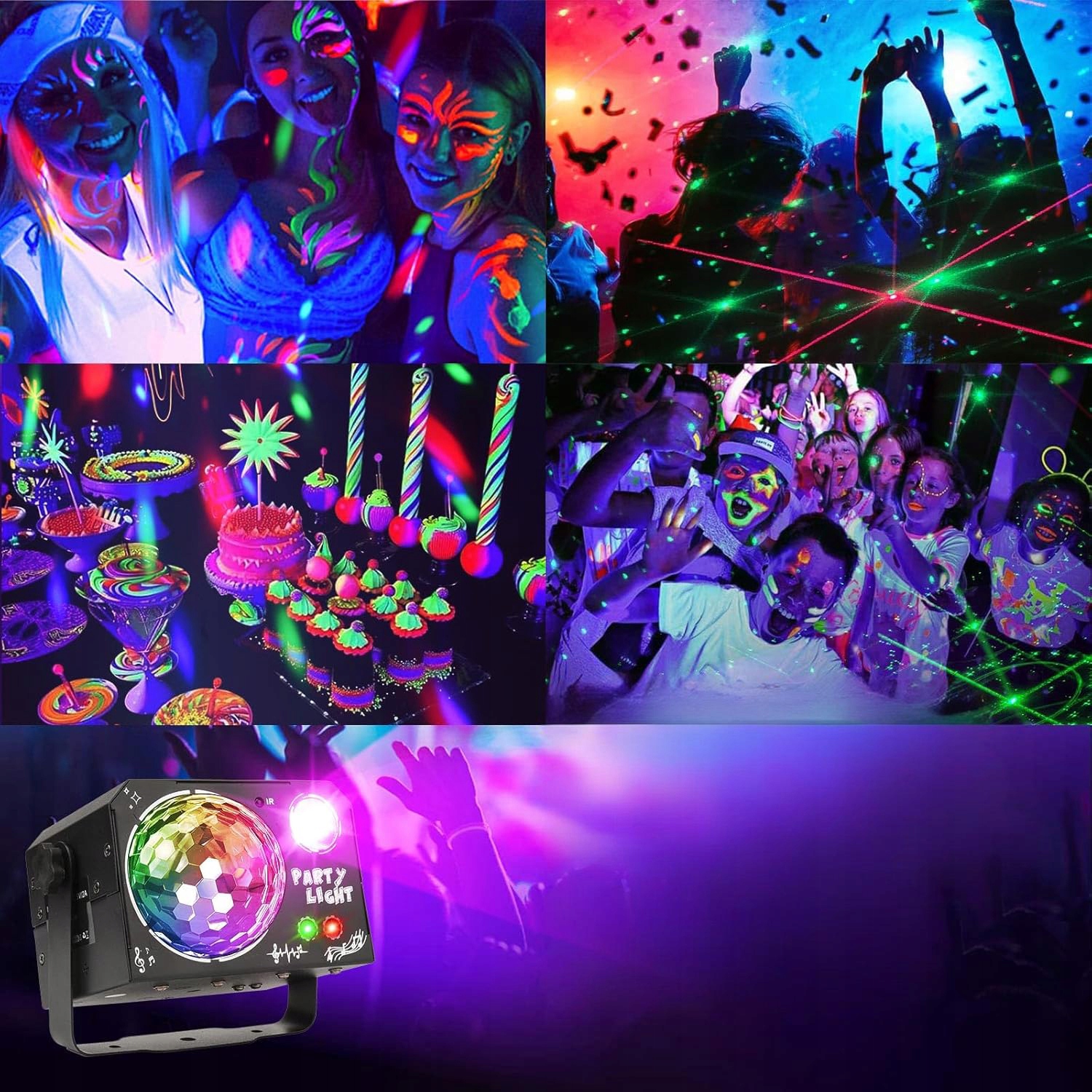 Диско-светильник 4 в 1 с дистанционным управлением, Диско-светильник с музыкальным управлением и RGB-светильниками, УФ-свет, светодиодная DJ-лампа с голосовым управлением, Диско-шар на Хэллоуин и Рождество