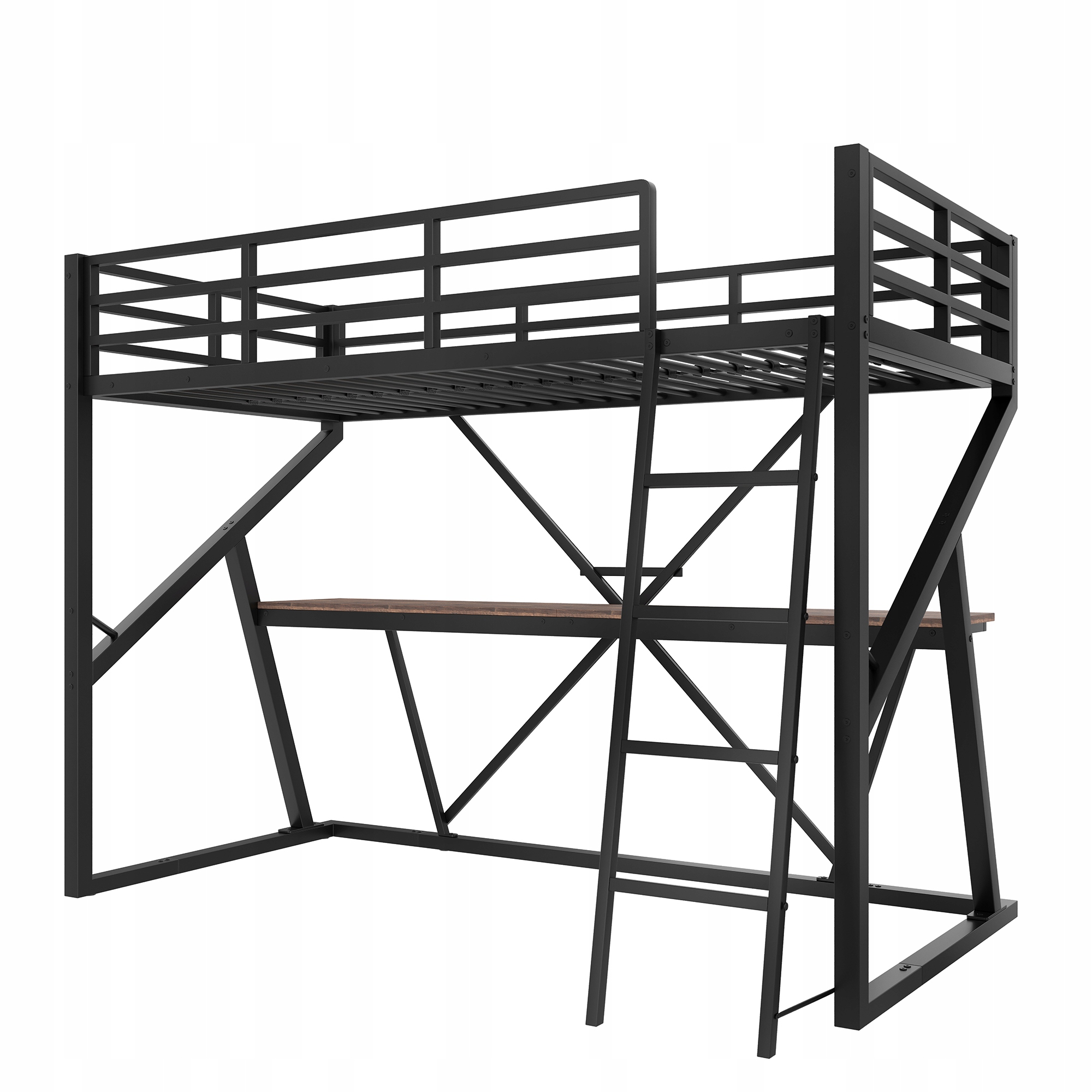 двухъярусная кровать 90 x 200 см, чугунная рама, светодиодная полоса, поручена, лестница, стол, без матраса, черный