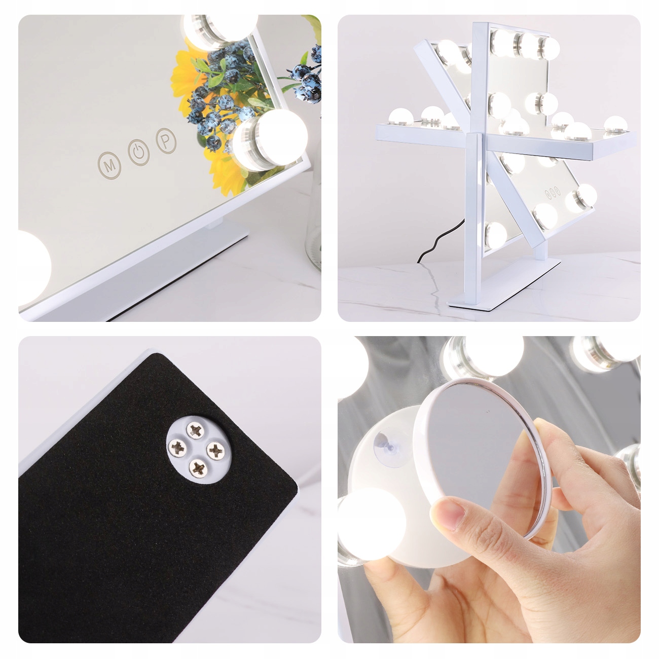 Дизайн со свободным вращением, обеспечивающий идеальный угол обзора. Независимо от того, насколько высок ваш туалетный столик, вы можете выбрать подходящий угол при макияже. с помощью сертифицированного UL адаптера на 12 В, 1 А, его длины достаточно для каждой розетки рядом с вашим столиком для макияжа.