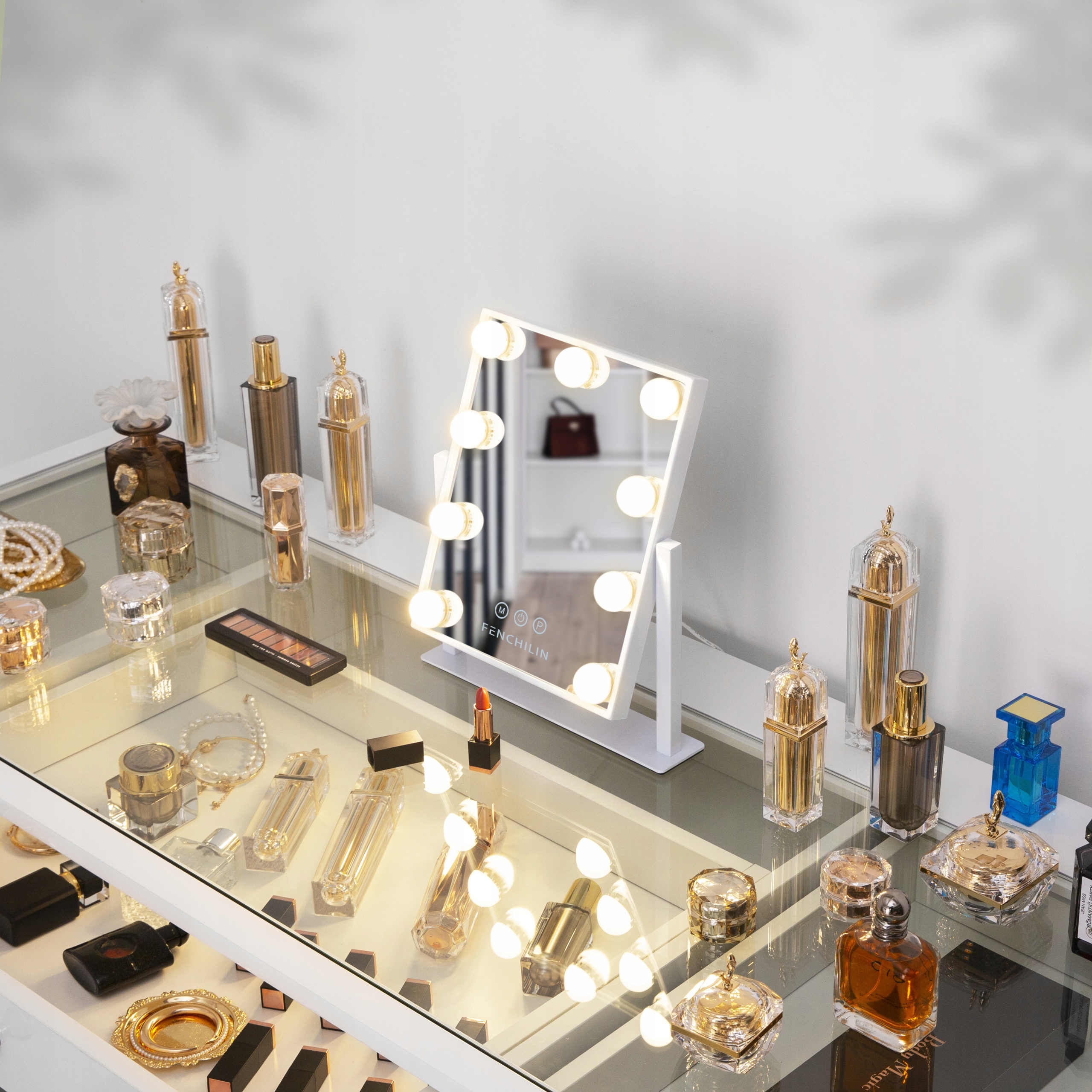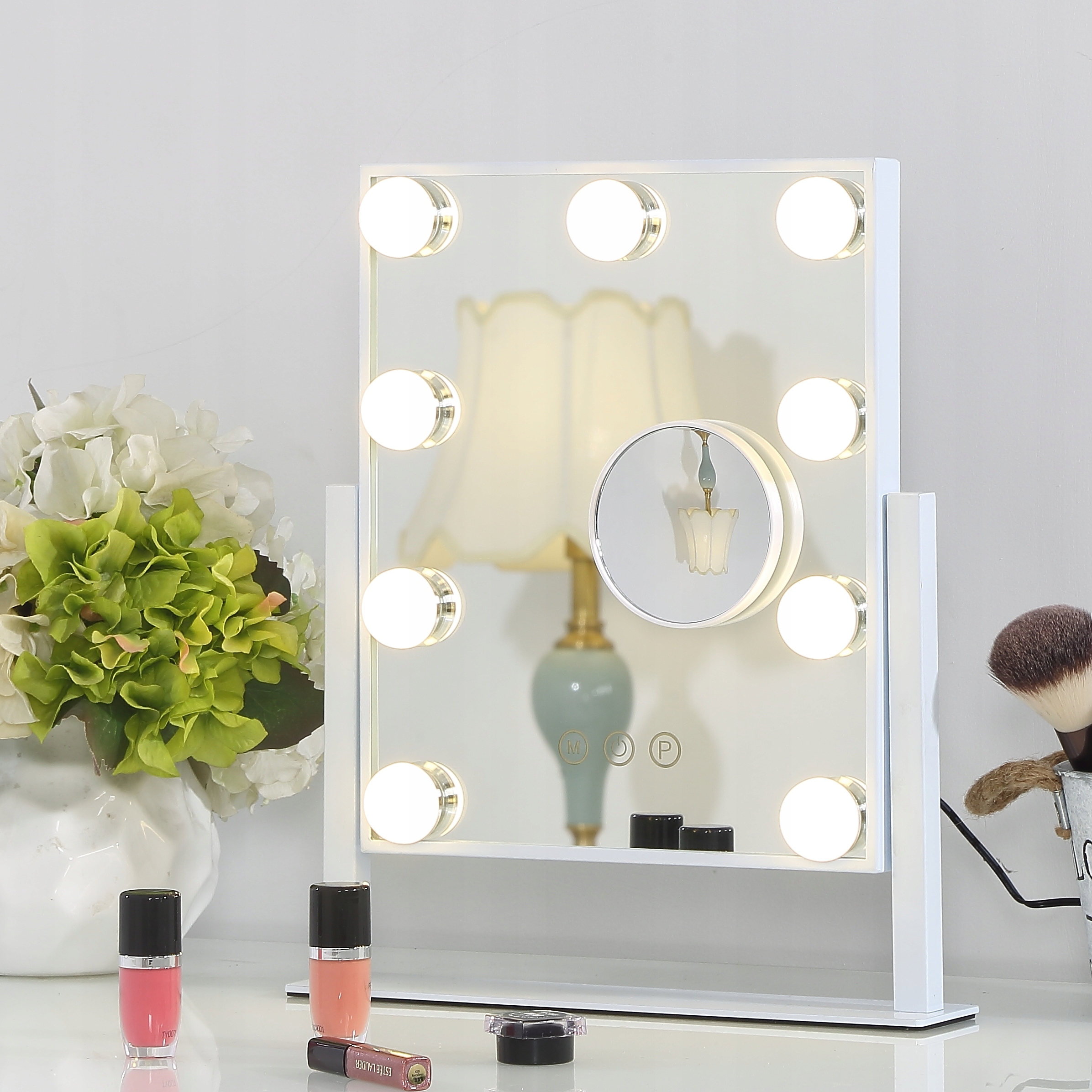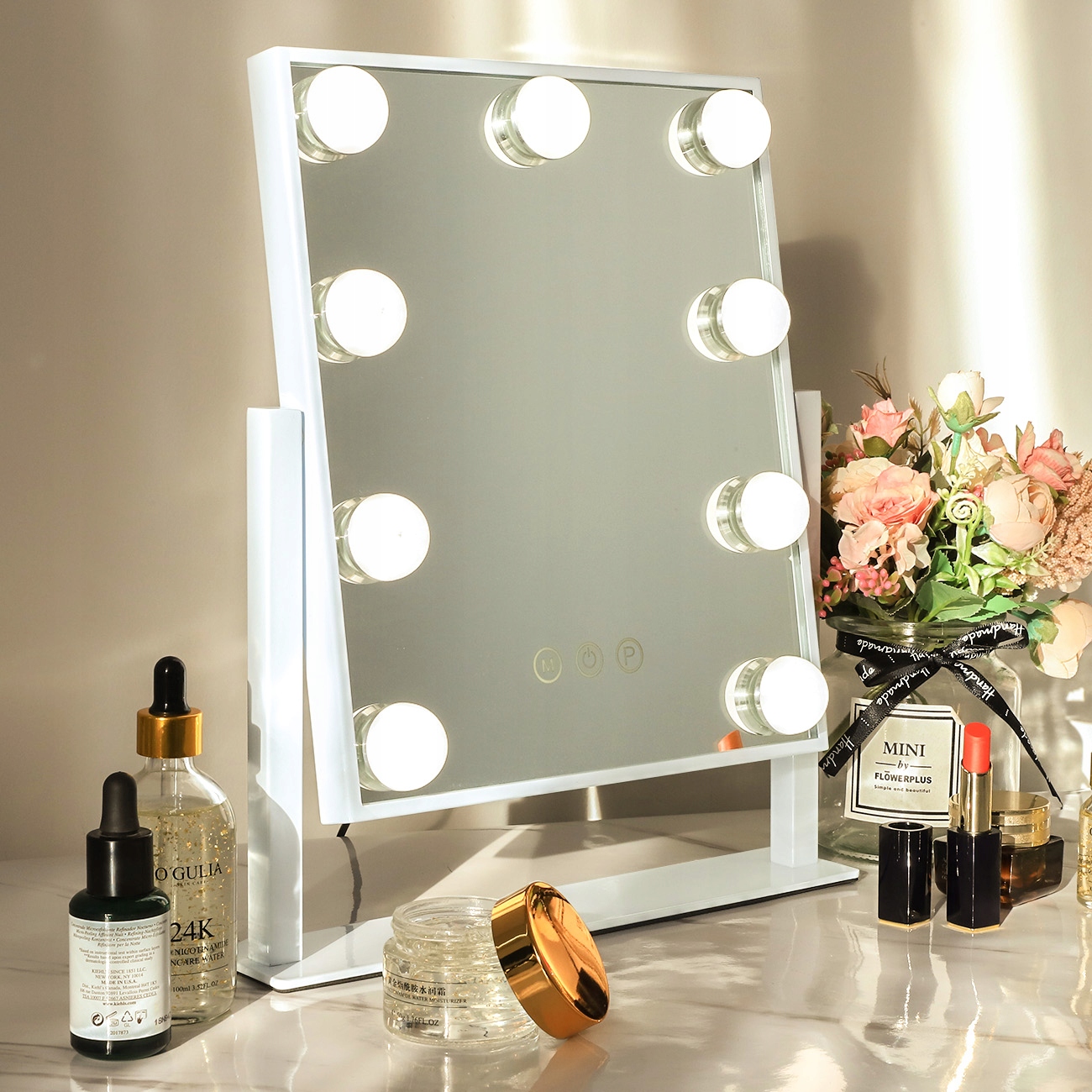 Естественное и яркое освещение: светодиодные лампы с 9 лампами с настройками теплого/дневного света и регулируемой яркостью обеспечивают чистое и яркое отражение и позволяют добиться максимально естественного нанесения макияжа, даже ночью