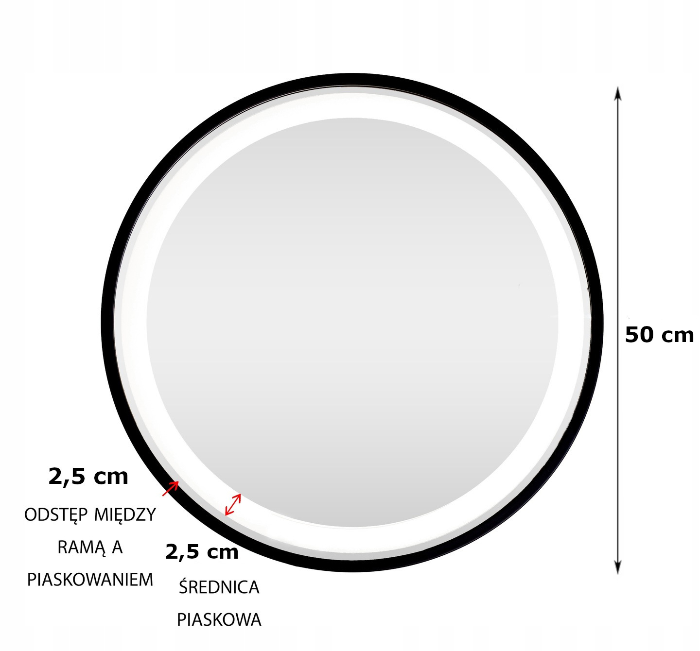 Светодиодное зеркало 50 см отшлифовано черное