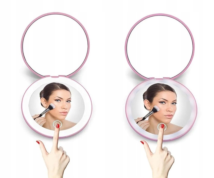 Складное и стильное светодиодное зеркало - это элемент, который не может Не хватает женского кошелька!  содержит два зеркала - одно классическое, а другое, что увеличивается до 2 раза. Вы увидите даже самые маленькие недостатки макияжа или волос, которые вы можете точно организовать. Например, на ноутбук.  Зеркало с освещением может быть использовано даже в темноте , обеспечивая идеальные условия для исправлений при любых обстоятельствах. С помощью энергии светодиодов, которые украсят ваше лицо и обеспечат естественный дневной свет для самого естественного внешнего вида.  Компактное светодиодное зеркало с увеличением будет идеальным в качестве ежедневного компаньона в кошельке